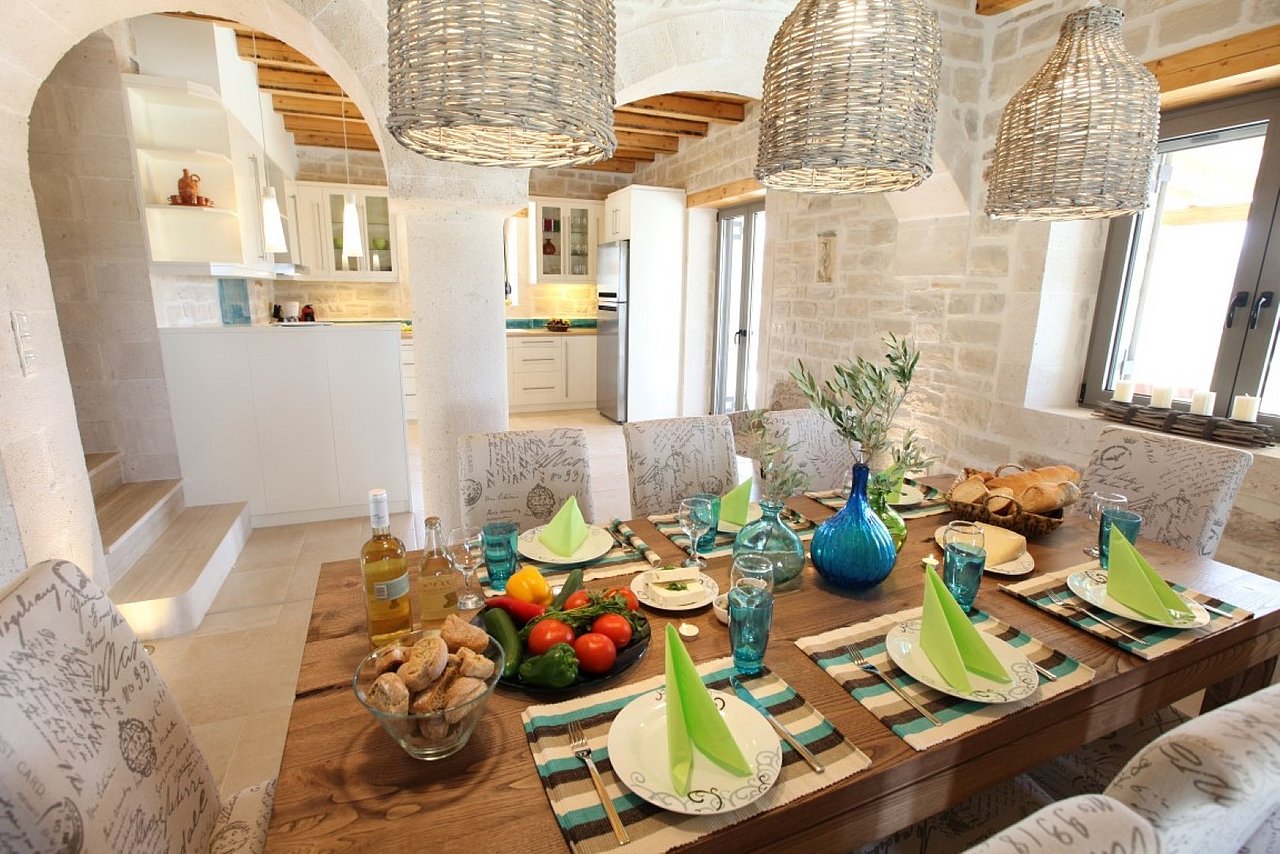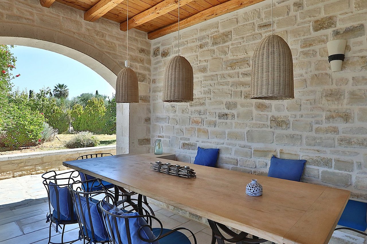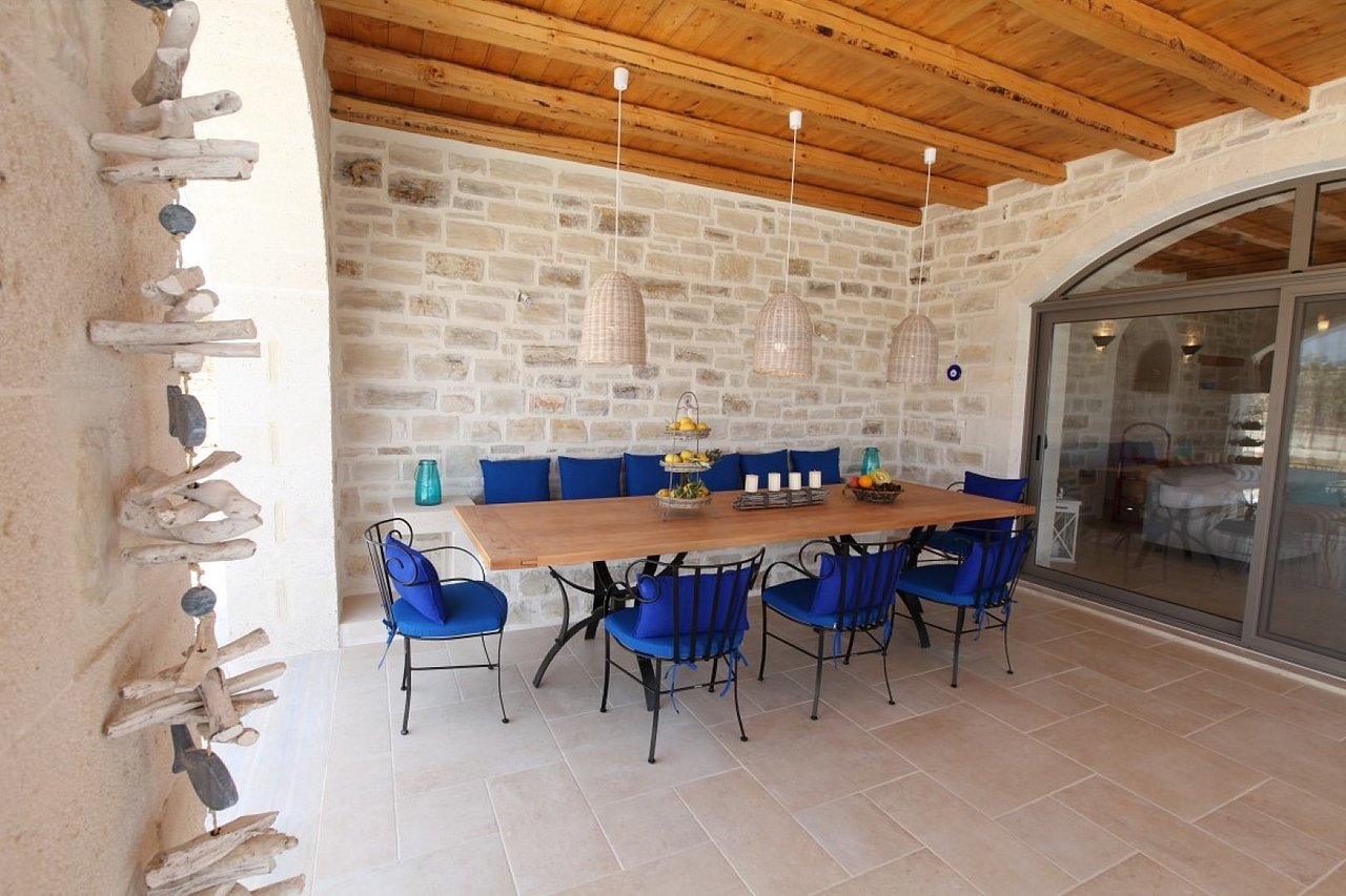 The newly built nature stone villa was just finished and is rented starting immediately. The very spacious villa with 4 bedrooms and 4 bathrooms and is suitable for 8 people + small child.