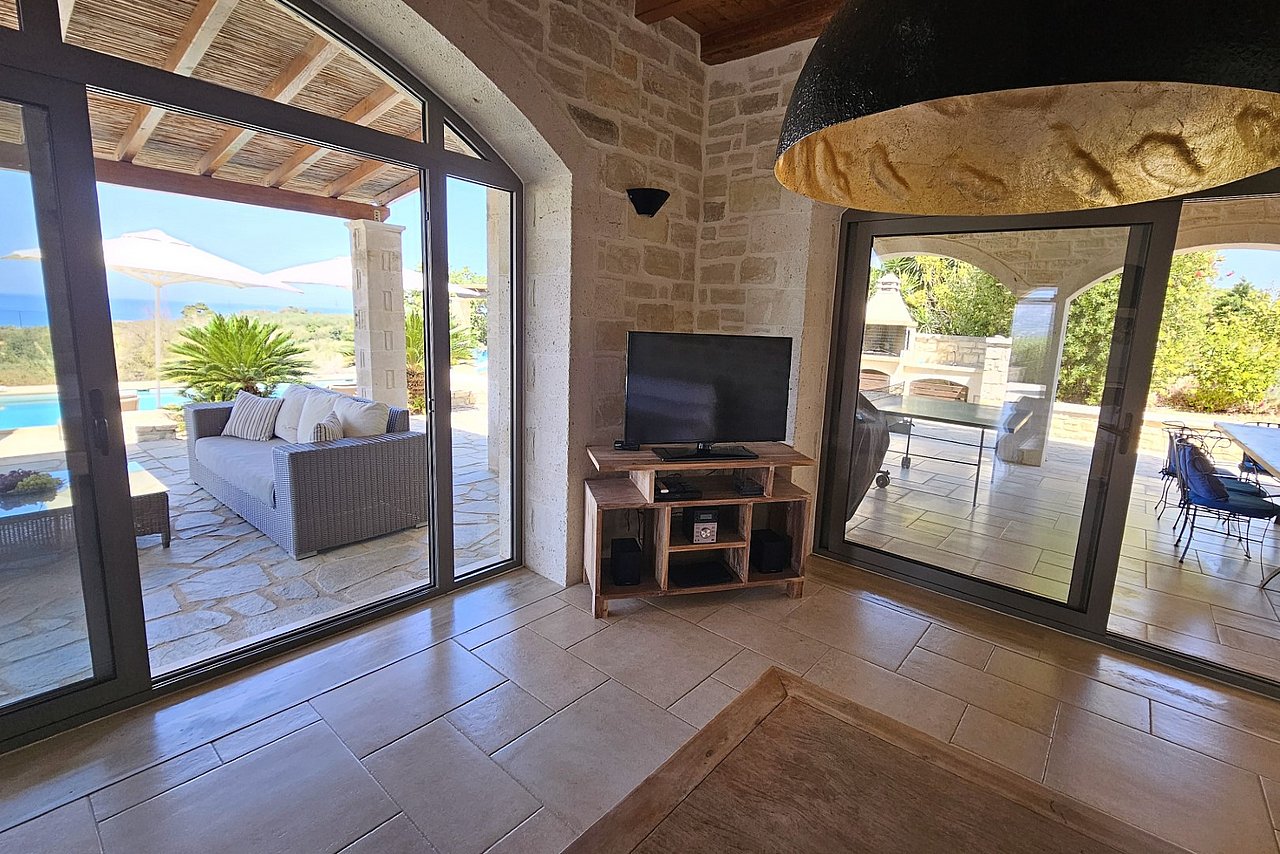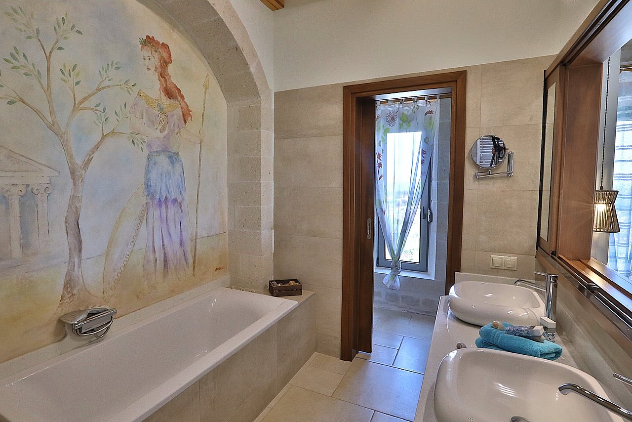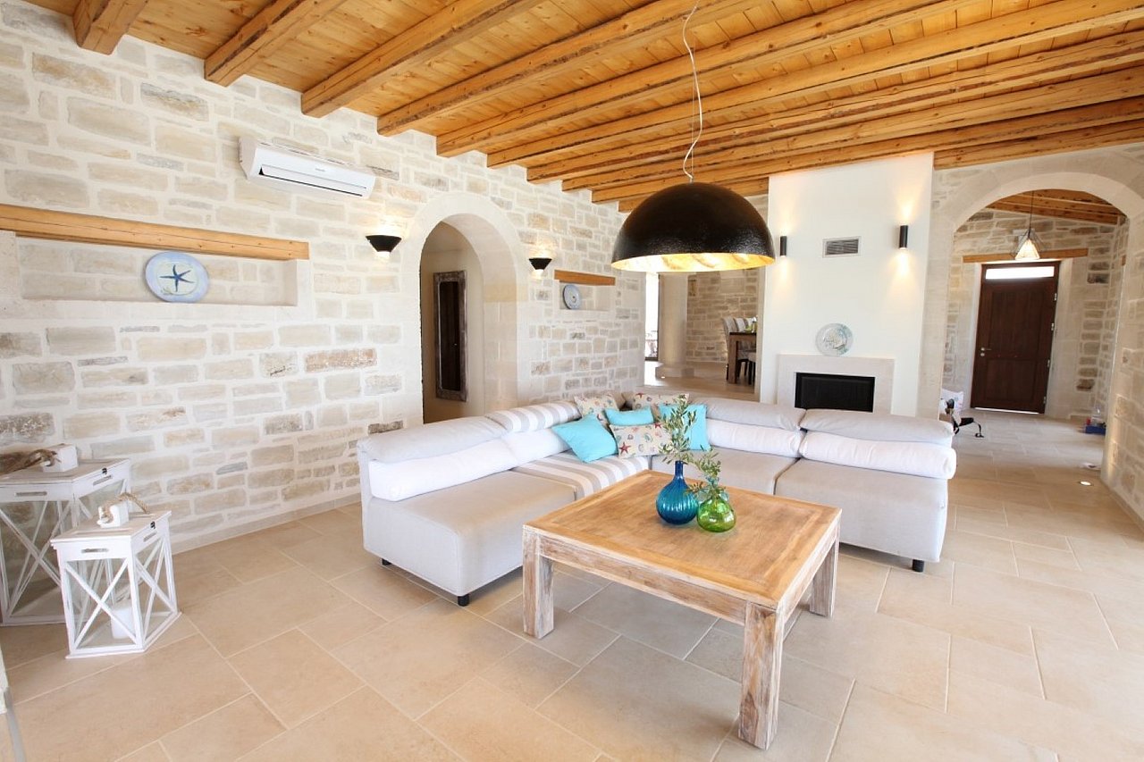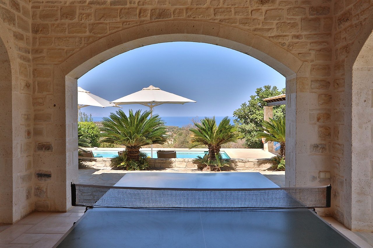 The villa has a wonderful view, tranquillity and a central location. It is located on the edge of the villa and through this you can also walk into the village. 400 m away in the traditional 'the polio house', a well-known tavern on Crete, in which you can enjoy traditional cuisine under shade-providing trees. Furthermore, there is a small mini-market and a Kafenion. Other taverns are found in the surrounding villages and in Skaletta, which is just 2 km away. Here you can eat directly on the beach as well.
