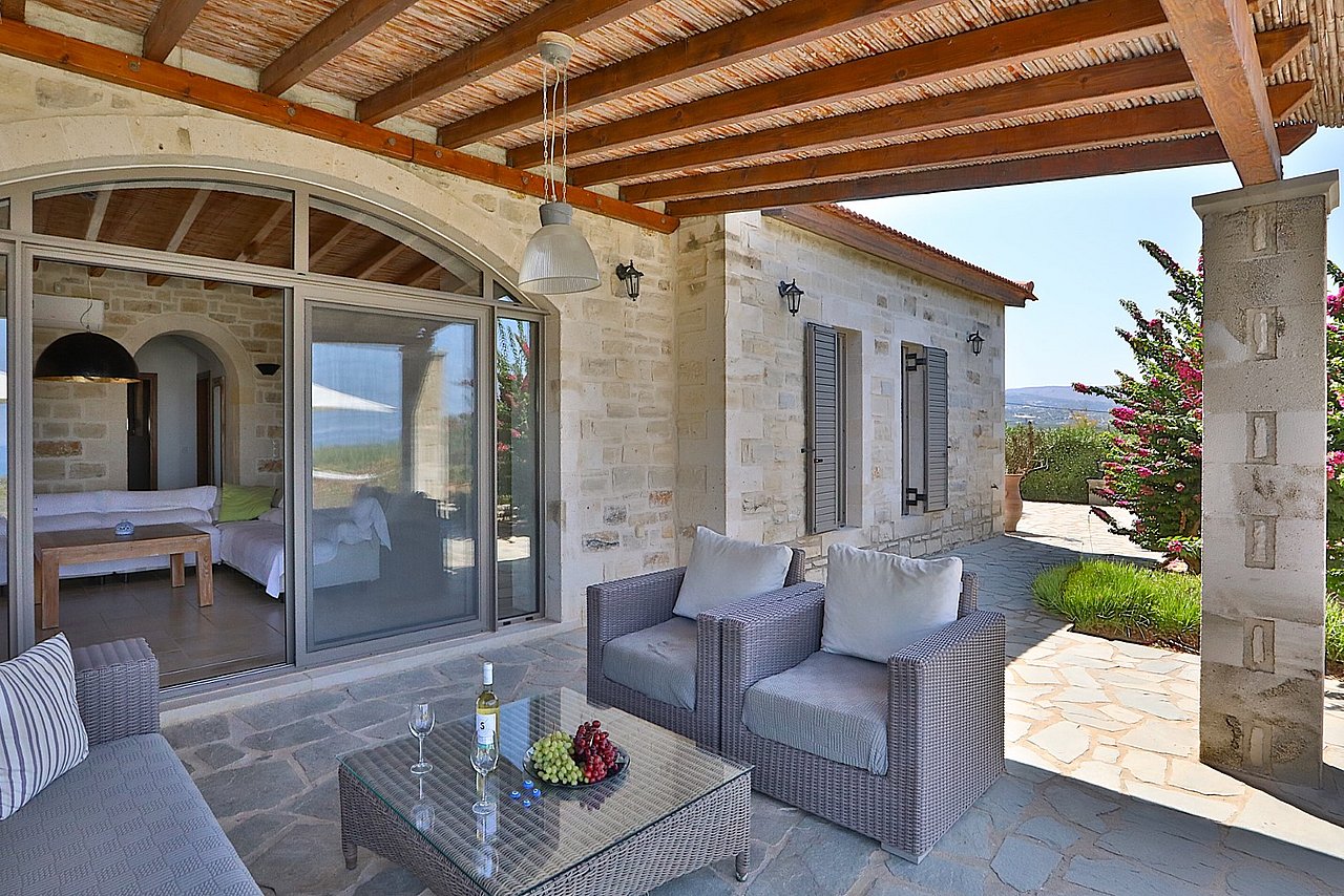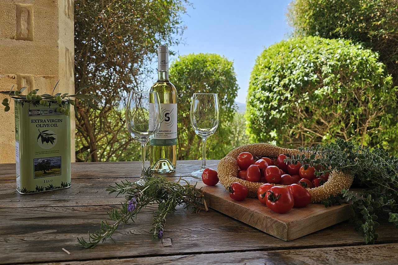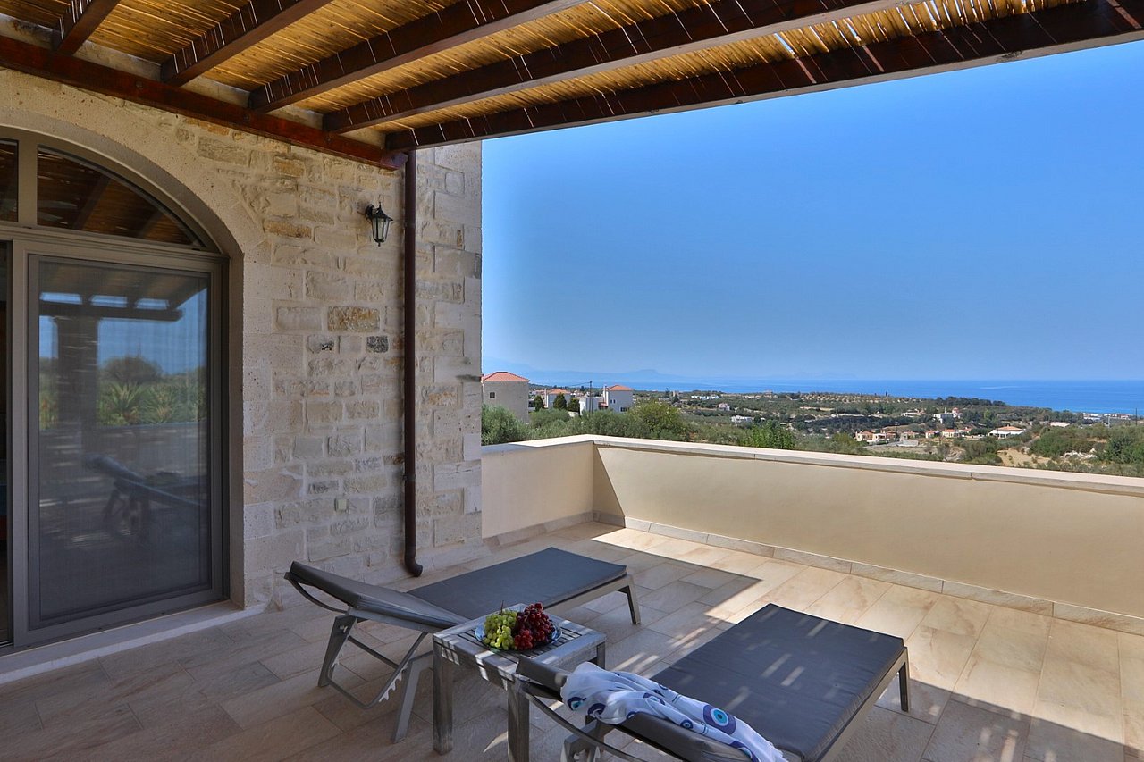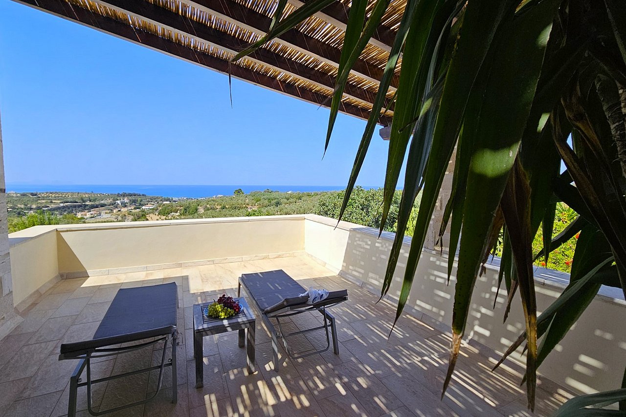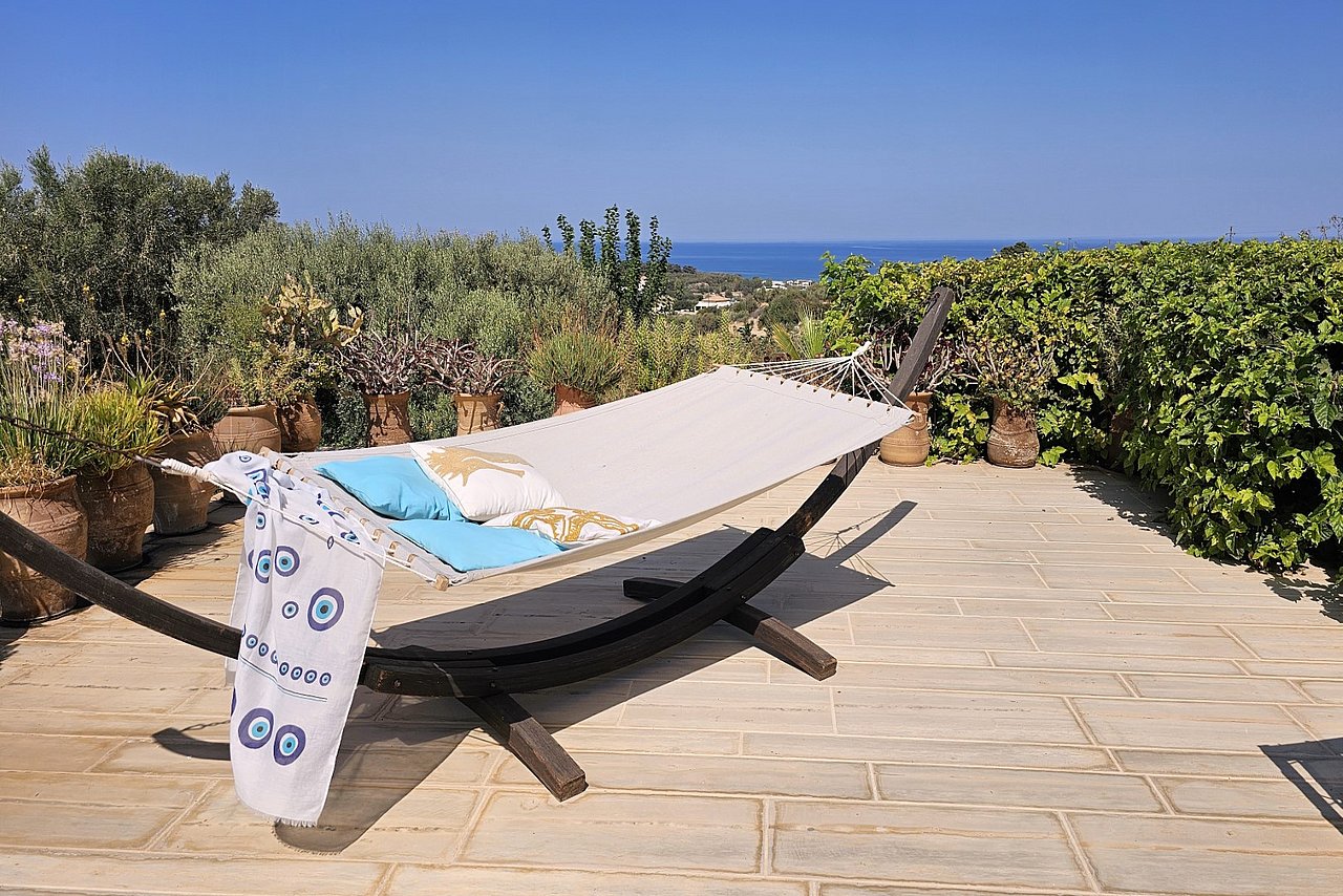 It is on the outskirts of Hamalevri and wonderfull embedded in the fantastic landscape of this traditional village. Relax in this wonderful location and with this amazing, expansive view. Wherever you are on the terraces, you will have a wonderful view of the landscape and the Aegean Sea. You have a view of the 'White Mountains', the Akrotiri peninsula, the Psiloritis and a lot of green. The surrounding area is a traditional growing area for olives and is therefore green throughout the year.