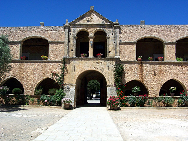 In dem äußerlich unscheinbaren Kloster hat sich eine der grausigsten Tragödien des kretisch/griechischen Freiheitskampfs abgespielt. Am 9. November 1866 begingen hier Hunderte von Männern, Frauen und Kindern gemeinsamen Selbstmord, um nicht den anstürmenden türkischen Truppen in die Hände zu fallen. Obwohl die Nachricht von dem schrecklichen Ereignis die Menschen in aller Welt aufrüttelte, dauerte es noch über 30 Jahre, bis die Insel endlich mit Hilfe der Großmächte vom türkischen Joch befreit wurde.