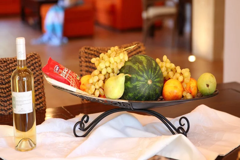 Bei Ihrer Anreise werden Sie mit frischem Obst, lokalem Wein und Olivenöl aus eigener Produktion überrascht.