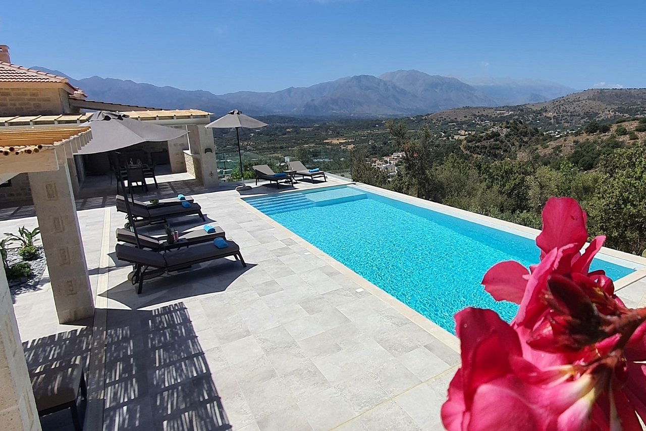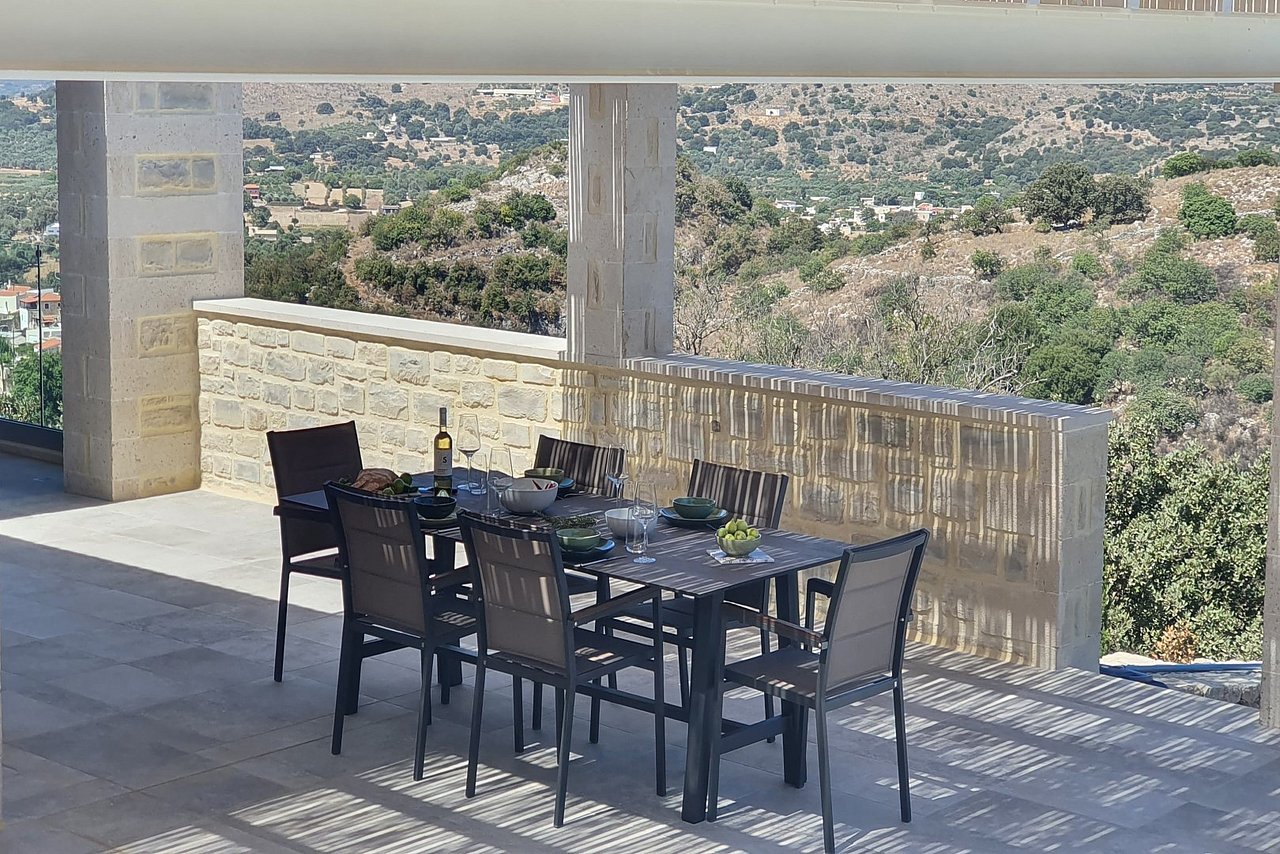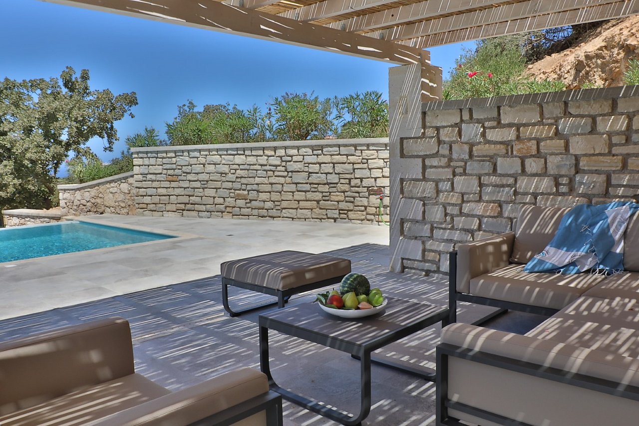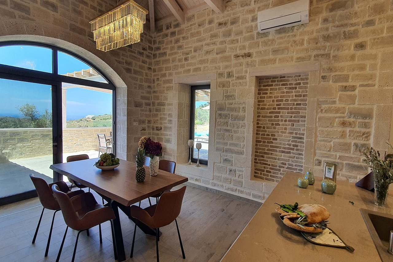 Erleben Sie Ihre Auszeit in der stilvollen Villa Aphrodite, einem Natursteinhaus mit traumhaftem Panoramablick auf das Meer, die Weißen Berge und die umliegende Natur. Hoch über dem Dorf Prines gelegen, bietet diese exklusive Ferienvilla auf einem 5.000 m2 großen Grundstück Ruhe, Privatsphäre und höchsten Komfort.