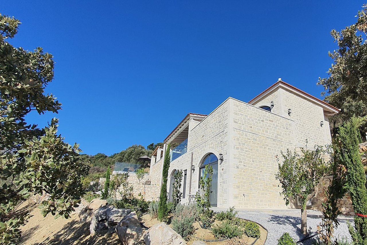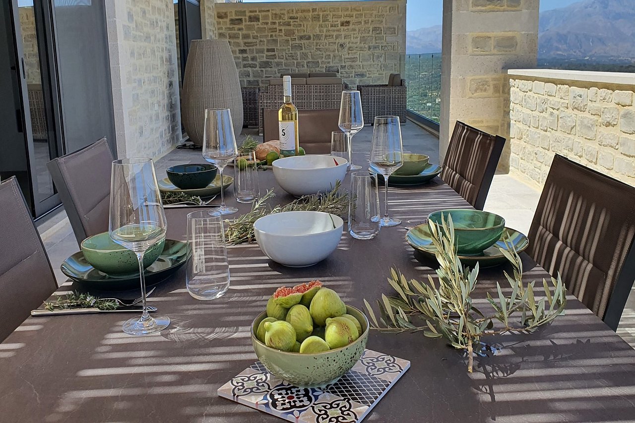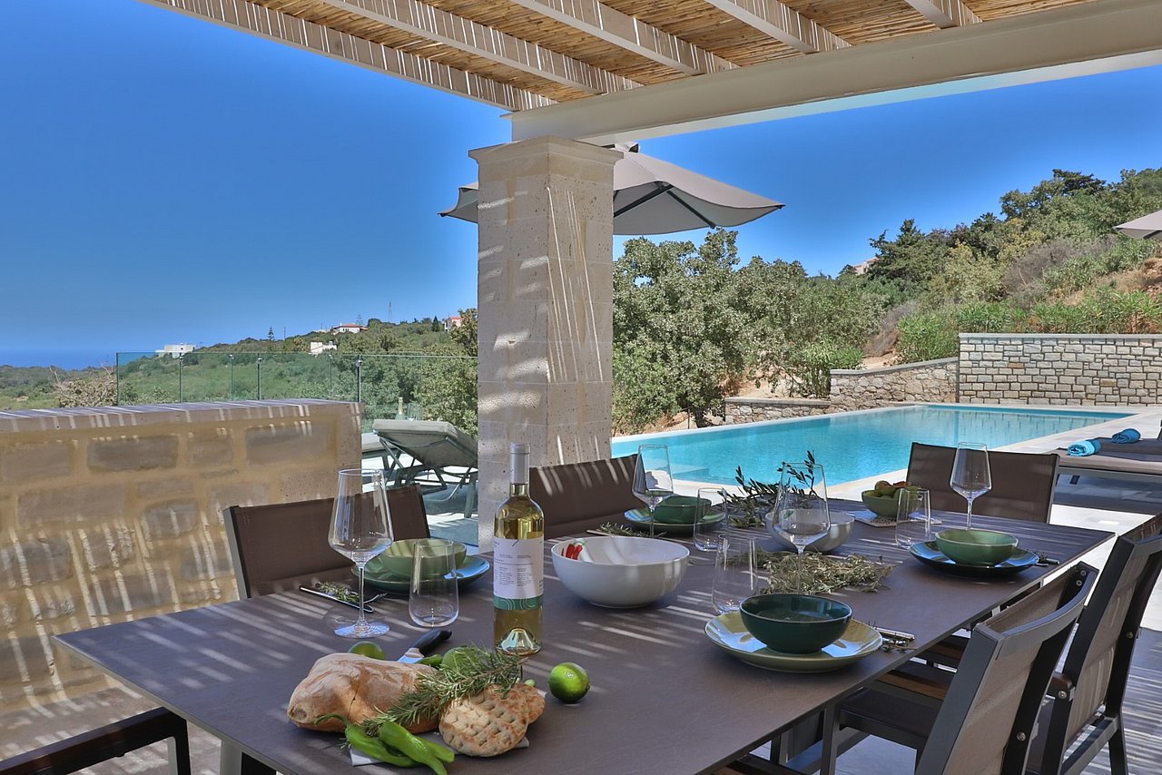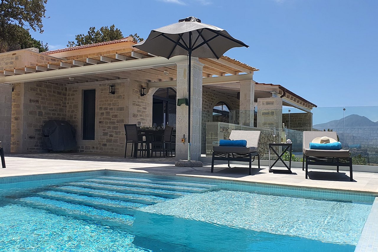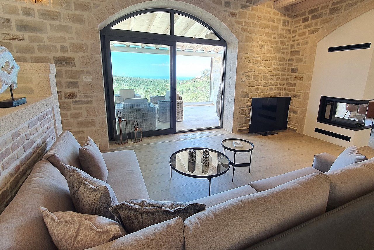 Erleben Sie Ihre Auszeit in der stilvollen Villa Aphrodite, einem Natursteinhaus mit traumhaftem Panoramablick auf das Meer, die Weißen Berge und die umliegende Natur. Hoch über dem Dorf Prines gelegen, bietet diese exklusive Ferienvilla auf einem 5.000 m2 großen Grundstück Ruhe, Privatsphäre und höchsten Komfort.