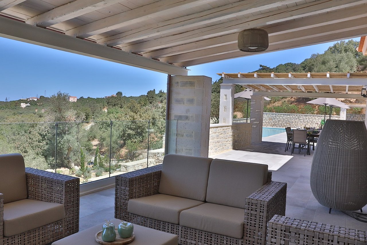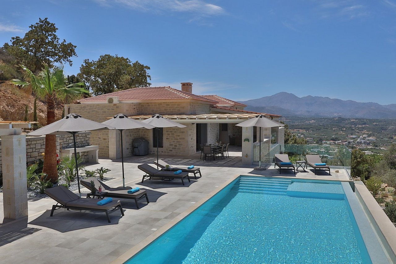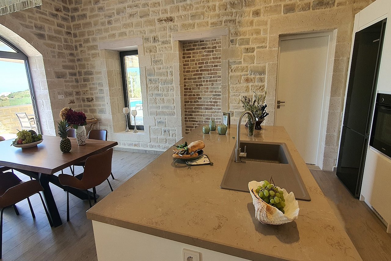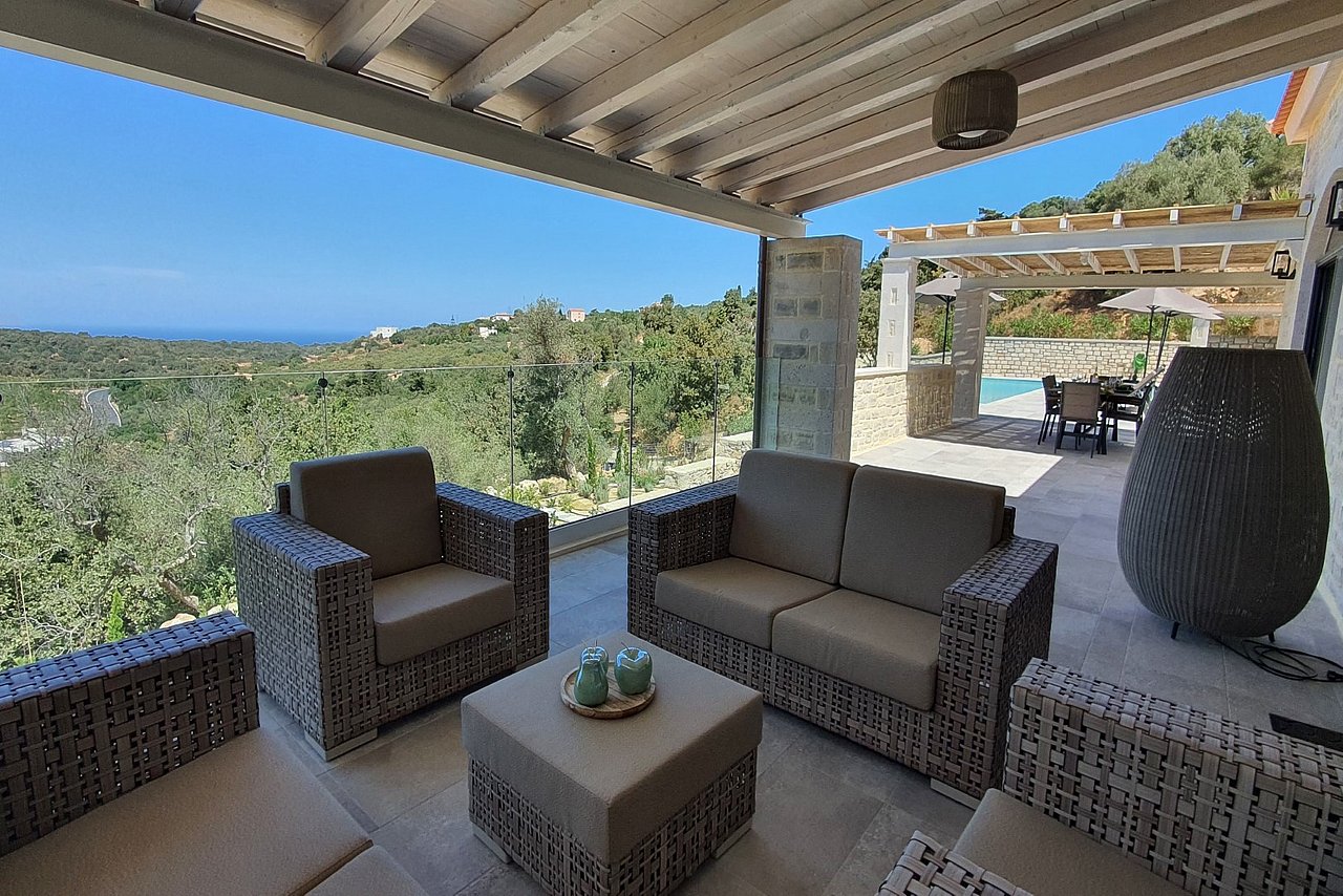 Erleben Sie Ihre Auszeit in der stilvollen Villa Aphrodite, einem Natursteinhaus mit traumhaftem Panoramablick auf das Meer, die Weißen Berge und die umliegende Natur. Hoch über dem Dorf Prines gelegen, bietet diese exklusive Ferienvilla auf einem 5.000 m2 großen Grundstück Ruhe, Privatsphäre und höchsten Komfort.