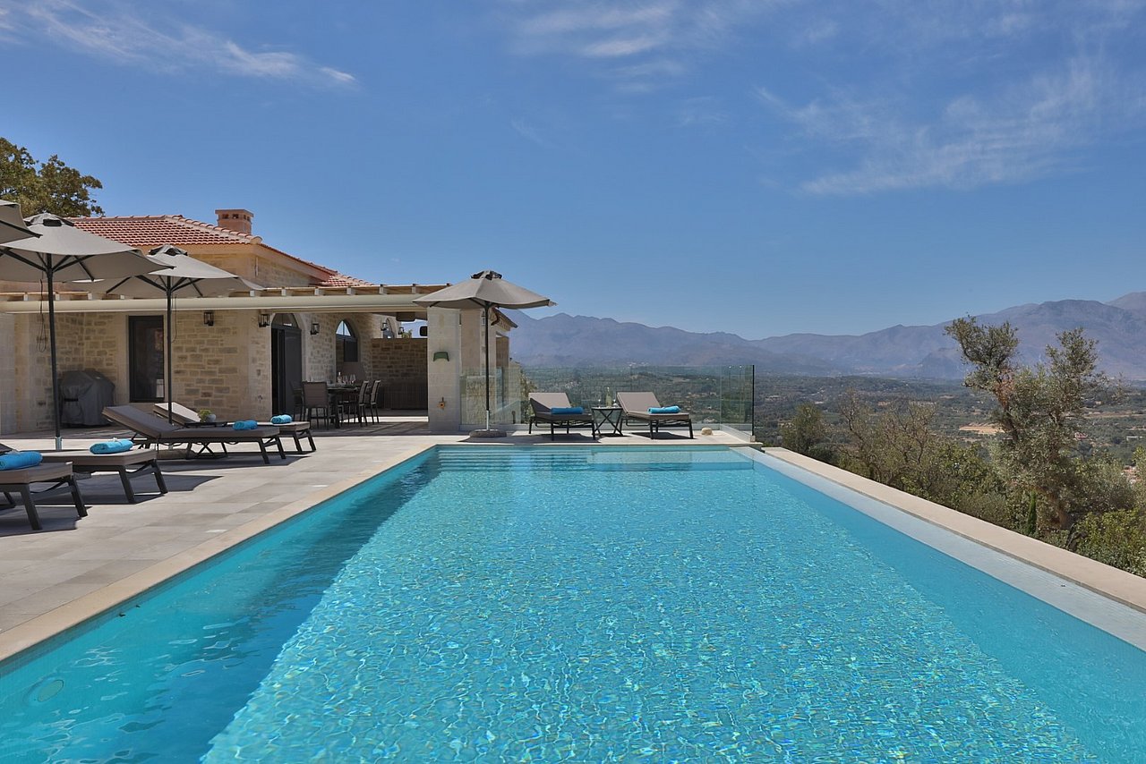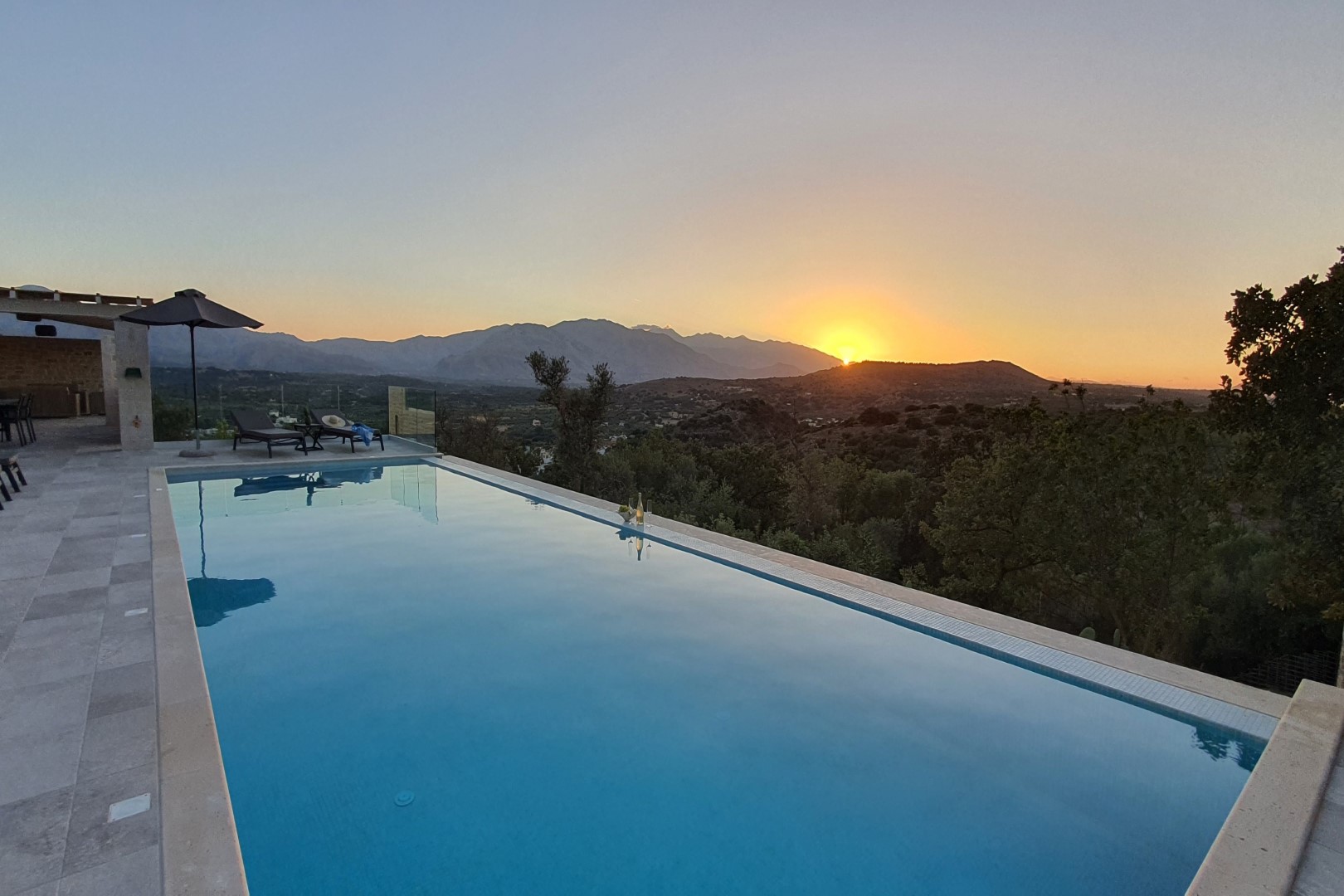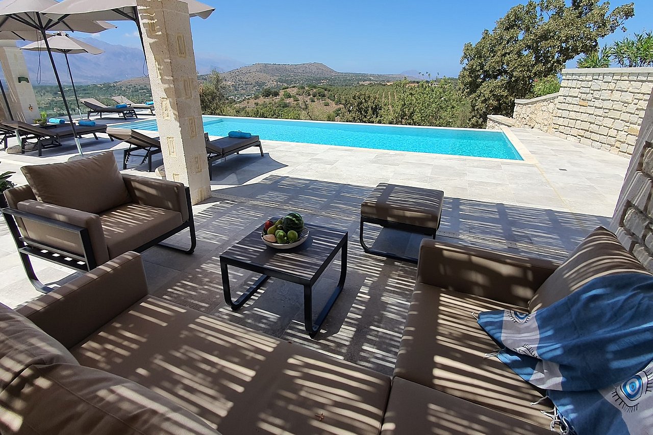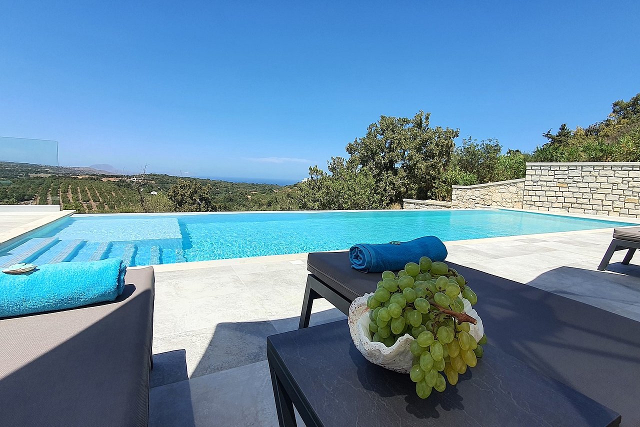Familien, Paare oder Freunde, die ein stilvolles Ferienhaus mit Infinity-Pool und Meerblick auf Kreta suchen – in naturnaher Lage und mit erstklassigem Wohnkomfort.