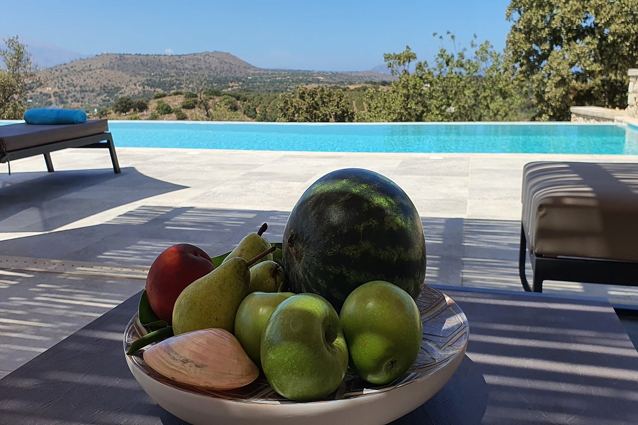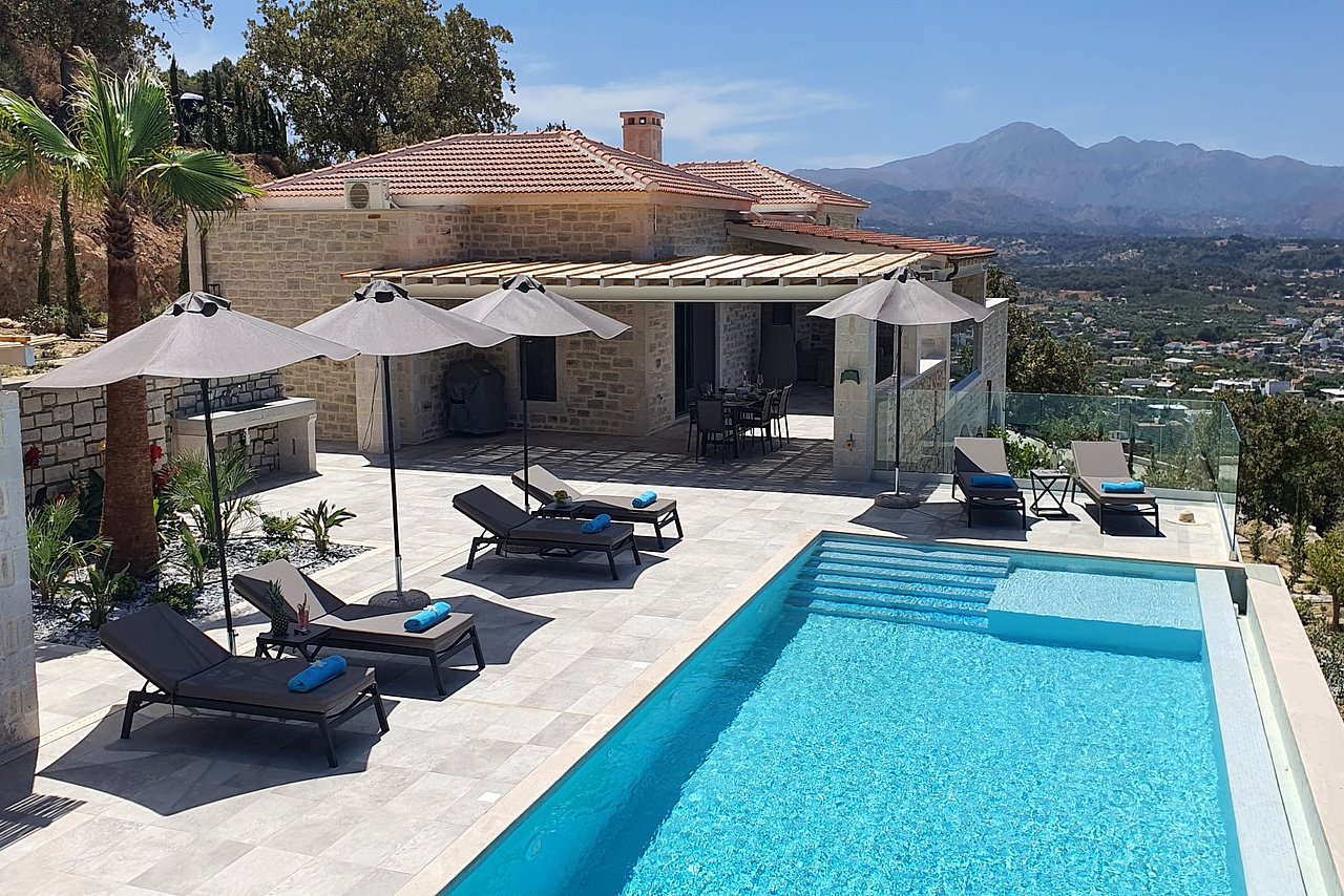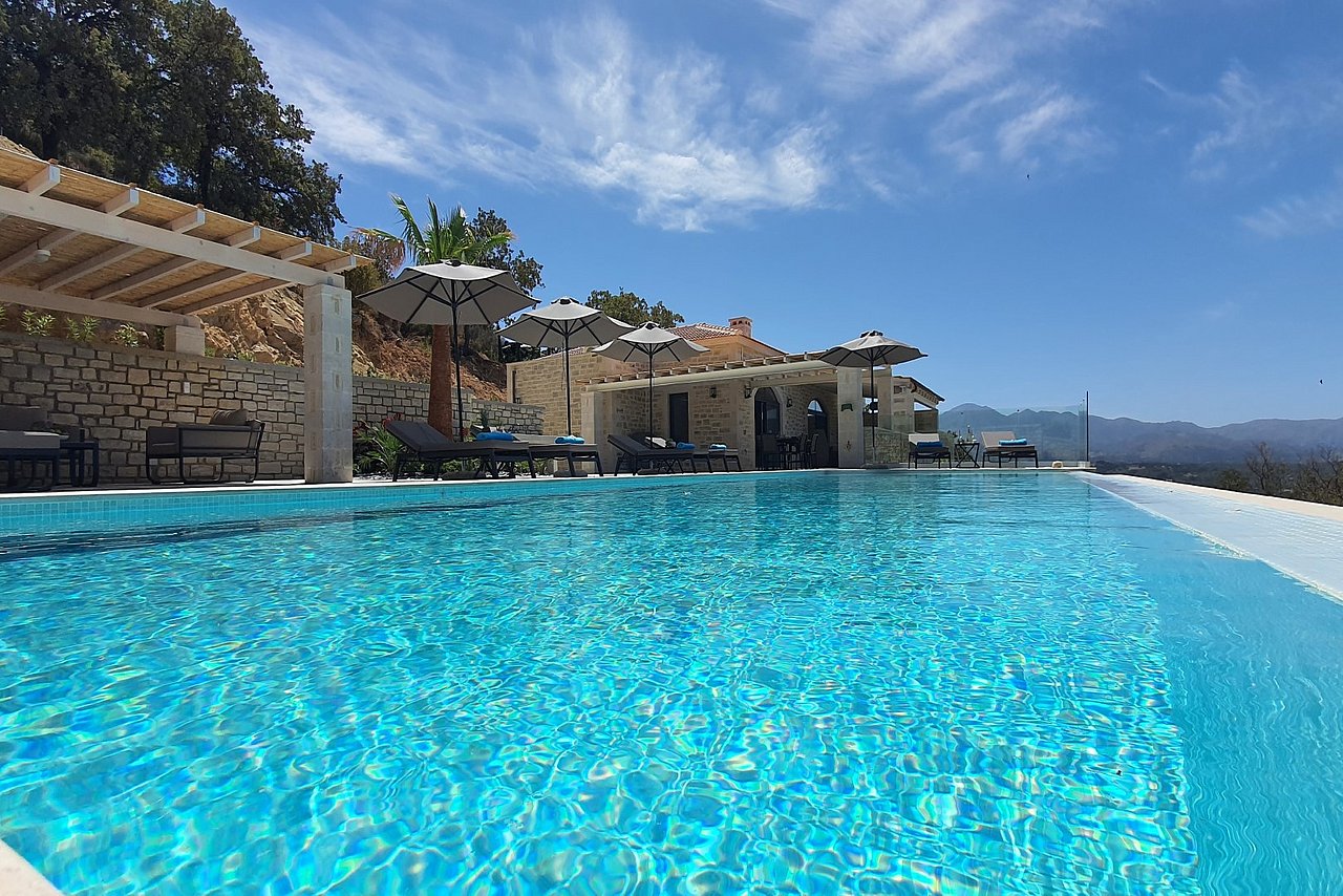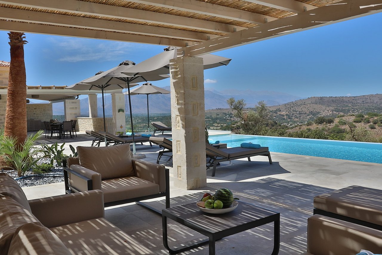 Familien, Paare oder Freunde, die ein stilvolles Ferienhaus mit Infinity-Pool und Meerblick auf Kreta suchen – in naturnaher Lage und mit erstklassigem Wohnkomfort.