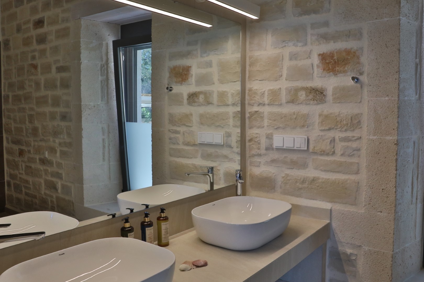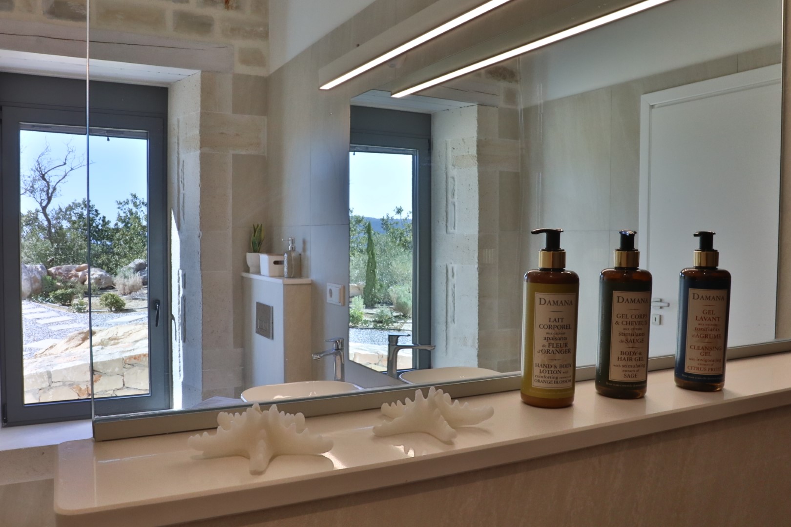 Die Bäder sind hochwertig ausgestattet mit Föhn, Kosmetikspiegel und Pflegeprodukten von Damana mit natürlichen Kräuterextrakten.
