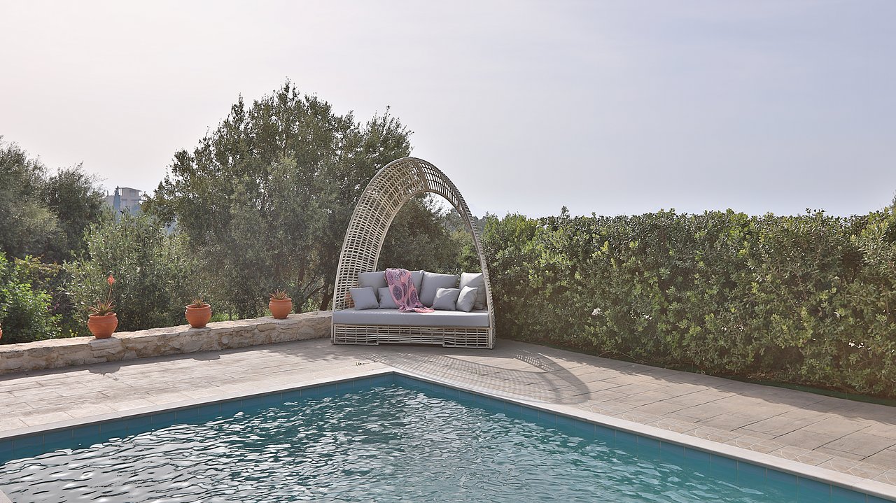 • 7 × 4,5 m großer Pool mit Liegeinsel & Sonnenliegen