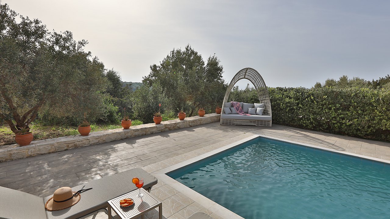 Die stilvolle Villa Canella liegt eingebettet in Olivenhaine in Adelianos Kampos, nur 800 m vom Meer entfernt. Auf 104 m2 Wohnfläche bietet sie Platz für bis zu 6 Gäste und überzeugt mit moderner Ausstattung, mediterranem Garten und einem privaten Pool. Gemeinsam mit der benachbarten Villa Meli teilt sie sich ein großes Grundstück – durch die geschickte Ausrichtung genießt jedoch jede Villa volle Privatsphäre.