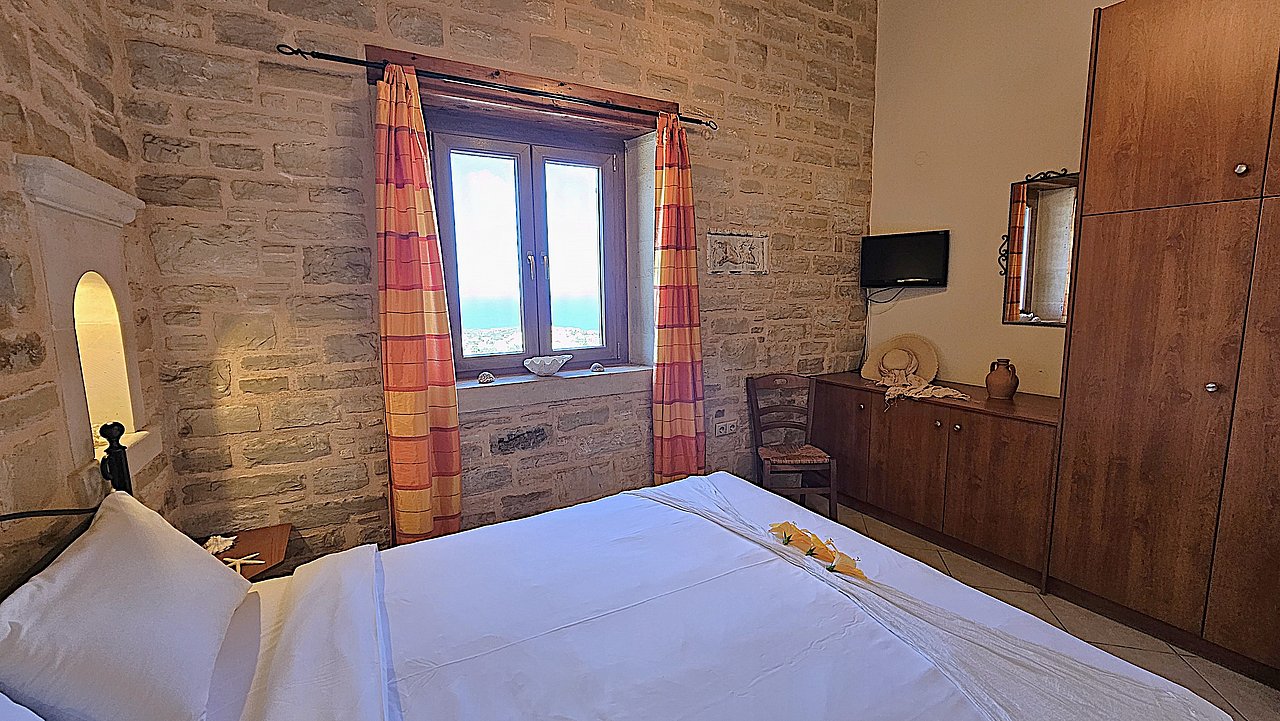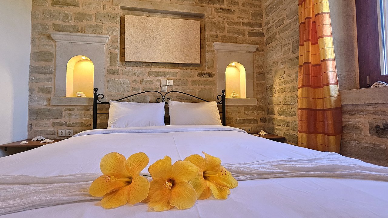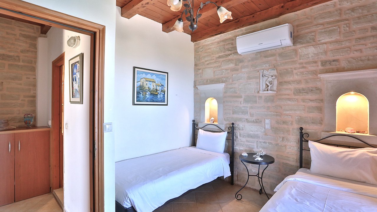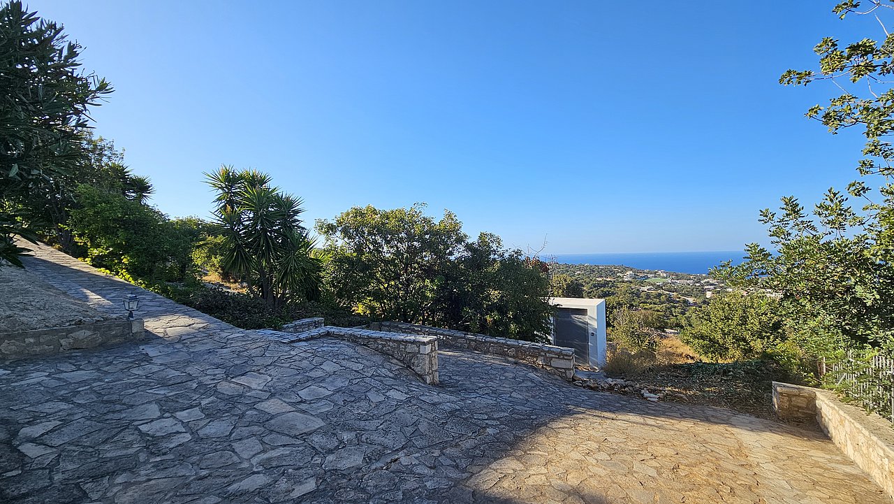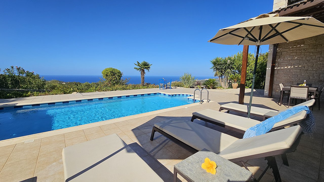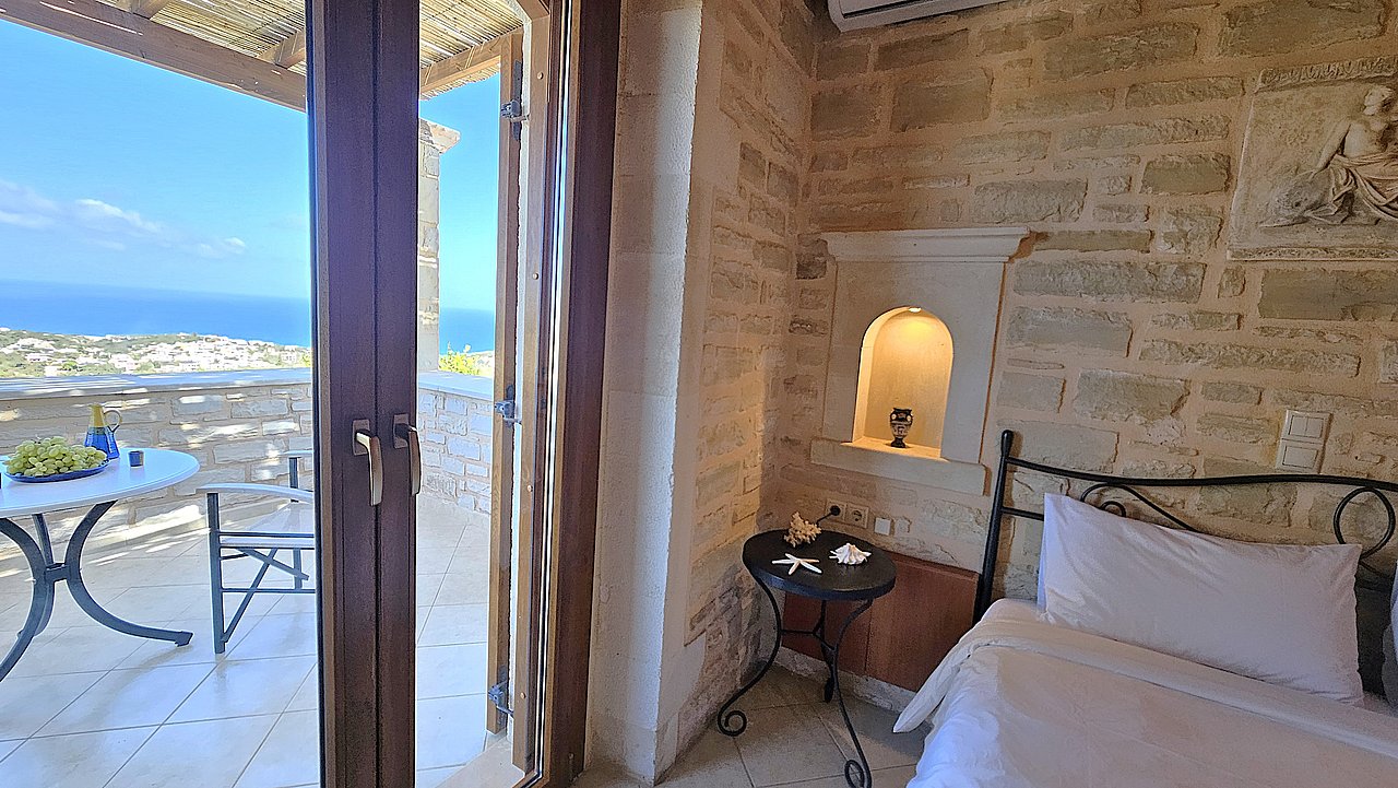 Familien oder Paare, die eine traditionelle Natursteinvilla mit privatem Pool, mediterranem Flair und Meerblick suchen – in ruhiger Lage nahe Gerani und Rethymno.