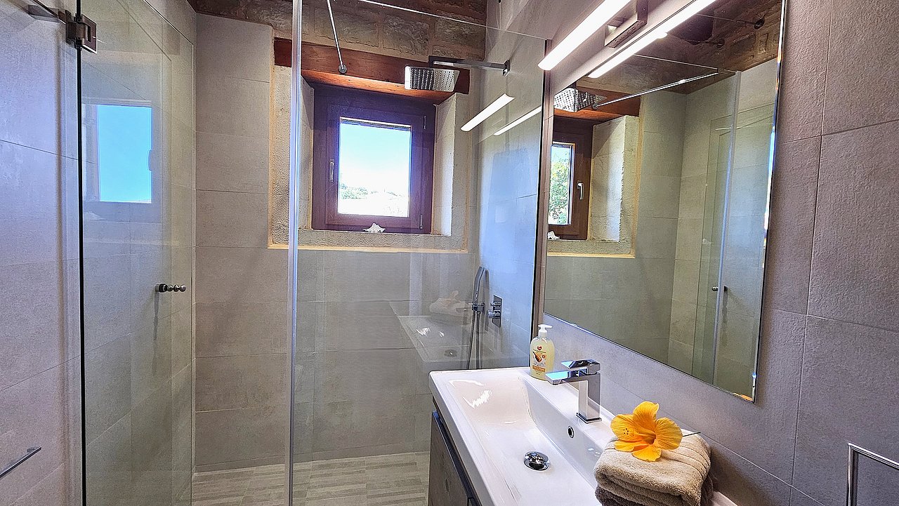 Zwei Badezimmer (eins je Etage) mit Dusche, Doppelwaschbecken & Fußbodenheizung in den Bädern sorgen für zusätzlichen Komfort.