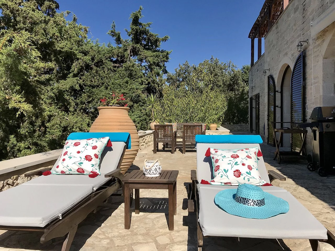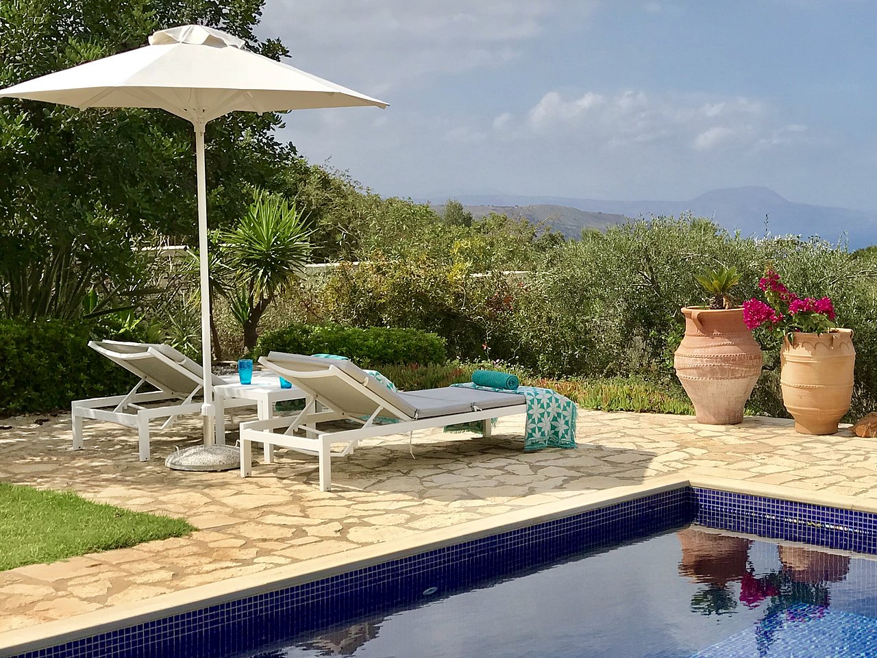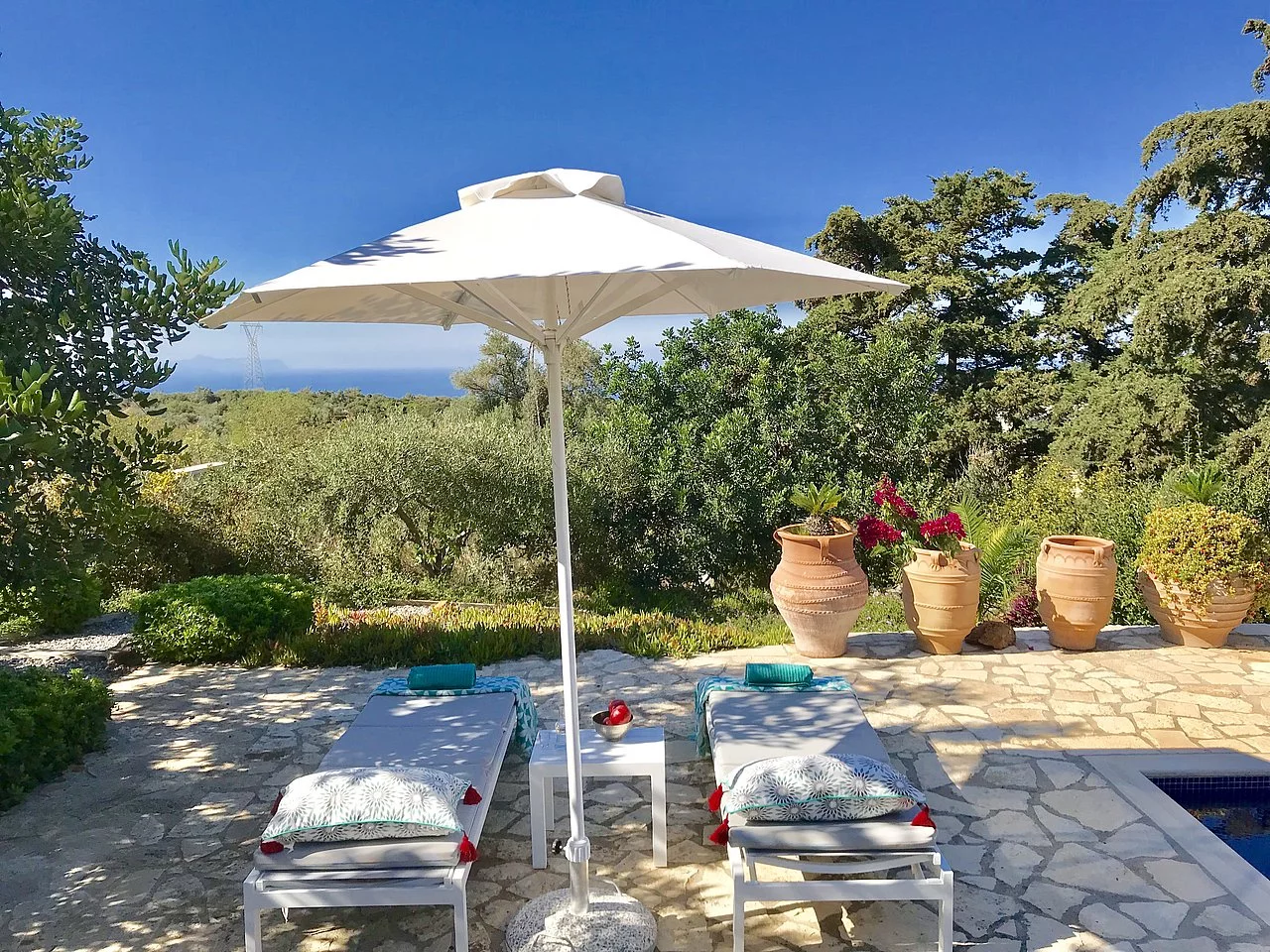 Die Villa bietet zahlreiche Möglichkeiten, die Sonne Kretas zu genießen – oder im Schatten zu entspannen: