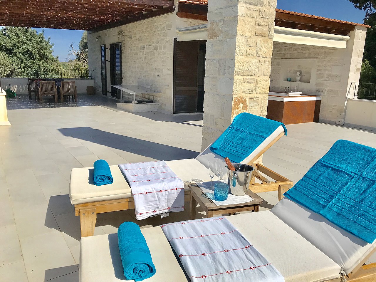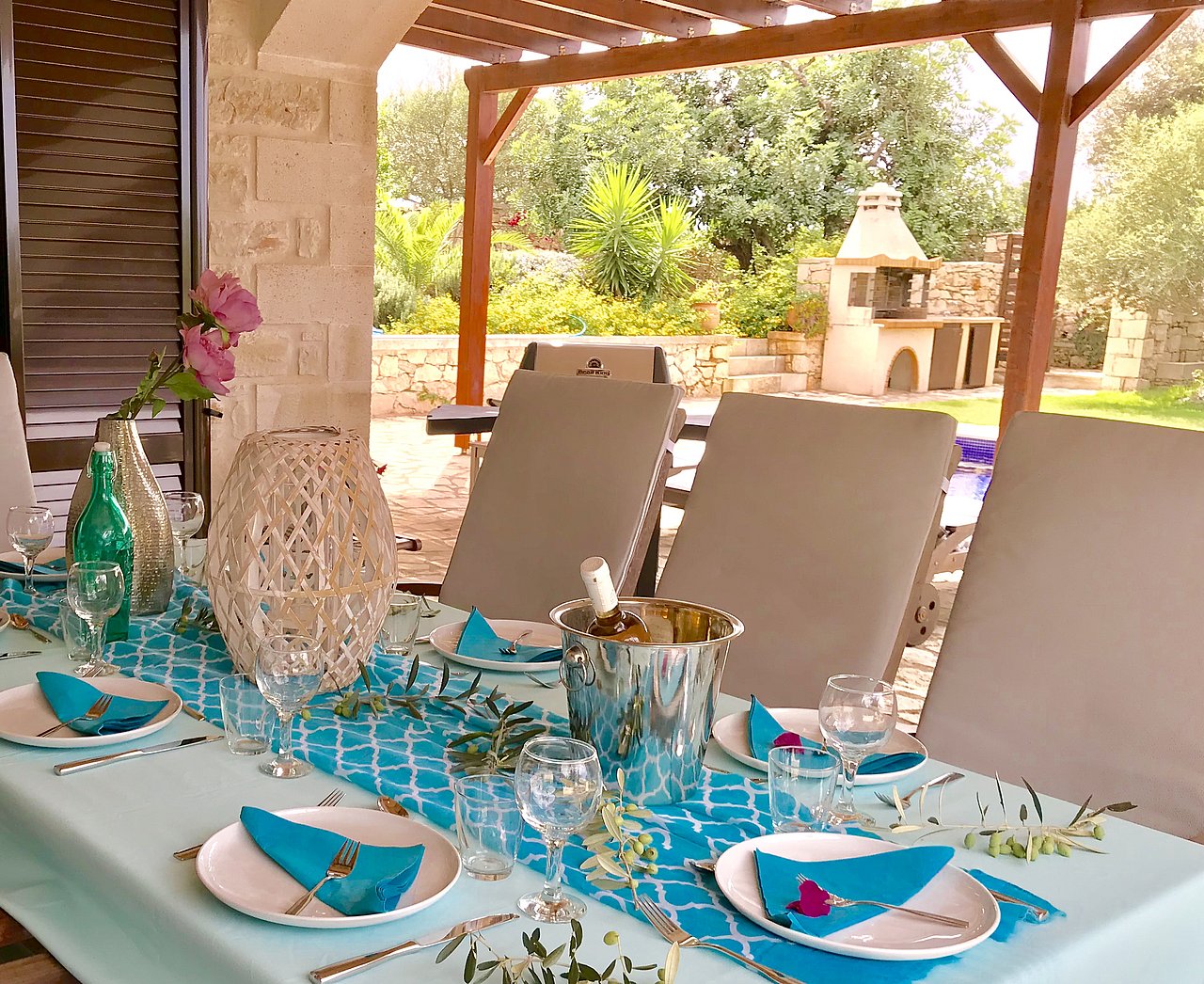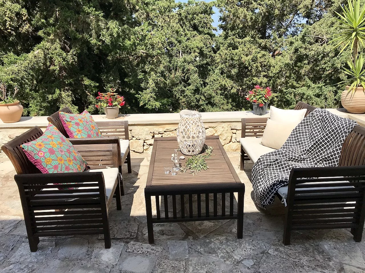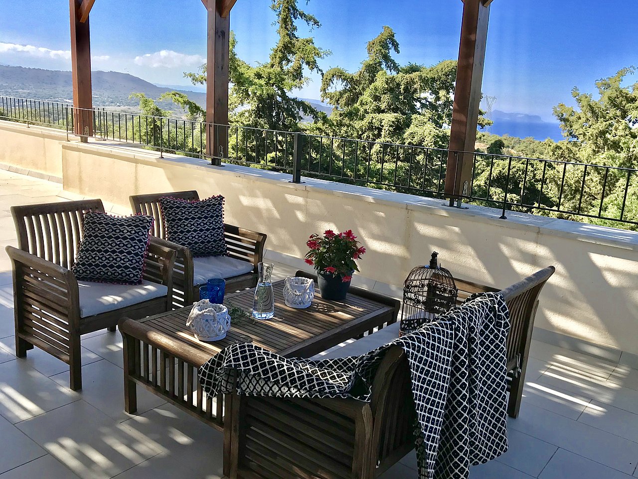 Die Villa bietet zahlreiche Möglichkeiten, die Sonne Kretas zu genießen – oder im Schatten zu entspannen:
