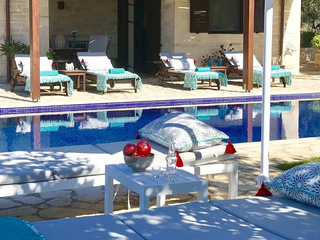 Familien oder Freundesgruppen, die eine stilvolle Natursteinvilla mit beheizbarem Pool, großer Dachterrasse und traditionellem Flair suchen – in naturnaher Lage, aber nah zu Stadt, Stränden und Ausflugsmöglichkeiten.