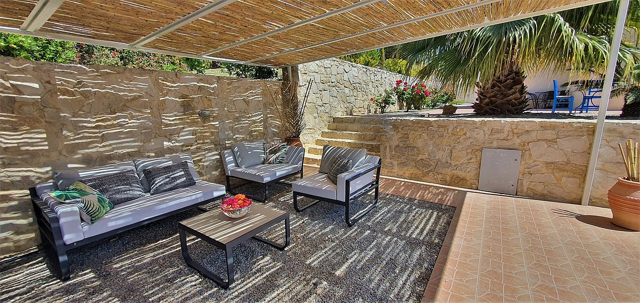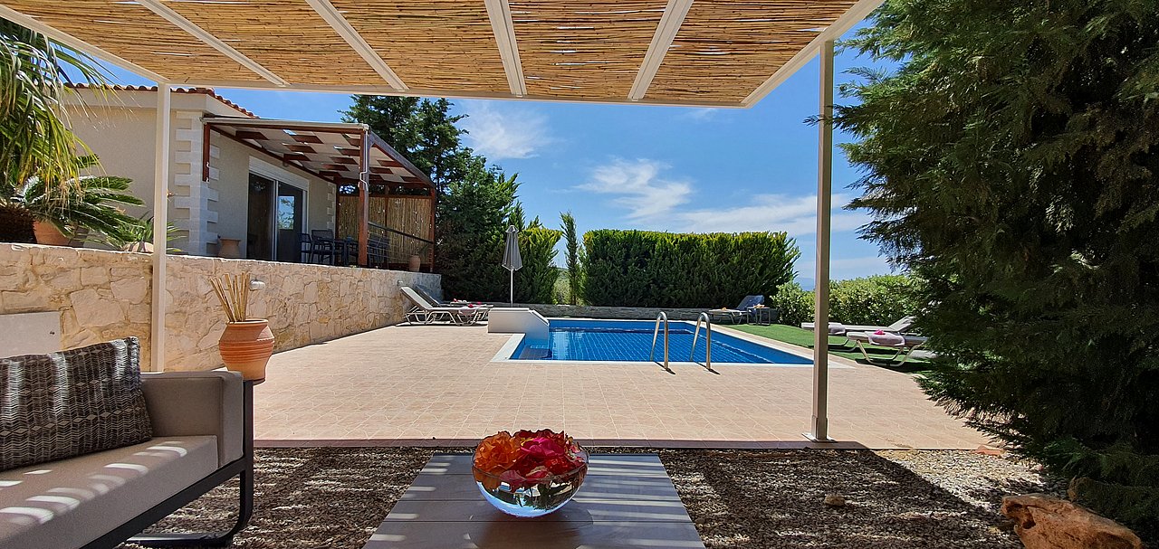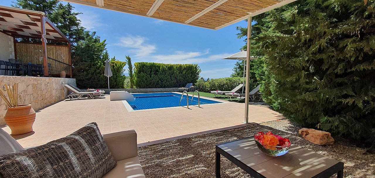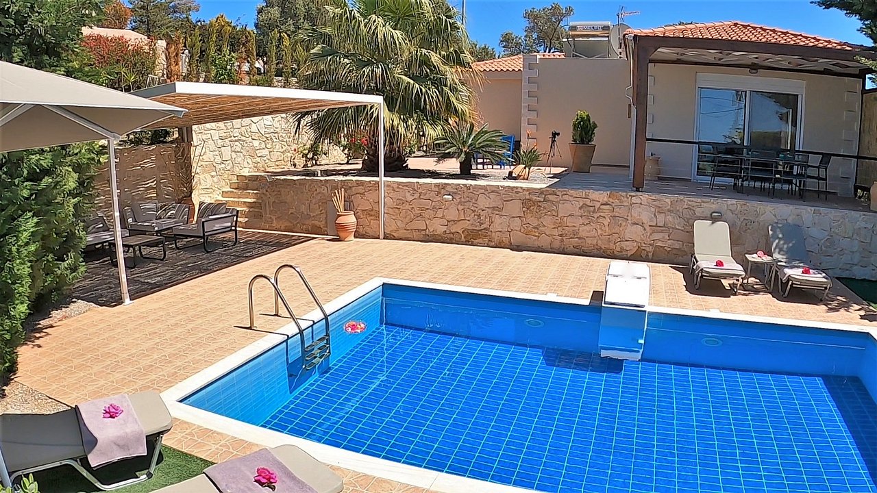 Familien oder Paare, die eine moderne Villa mit Pool, mediterranem Garten und Strandnähe suchen – in ruhiger Lage, aber dennoch nahe zu Rethymno und lokalen Tavernen.