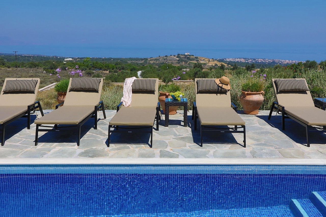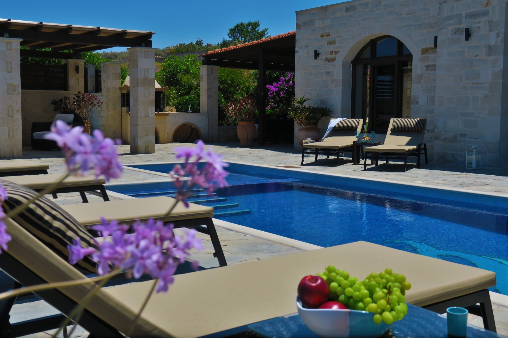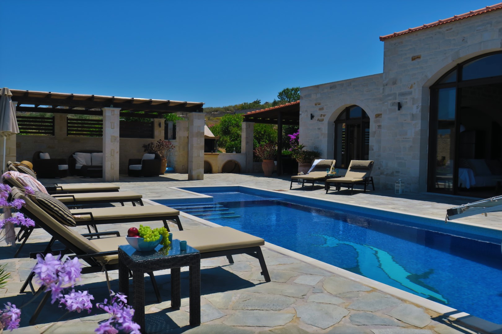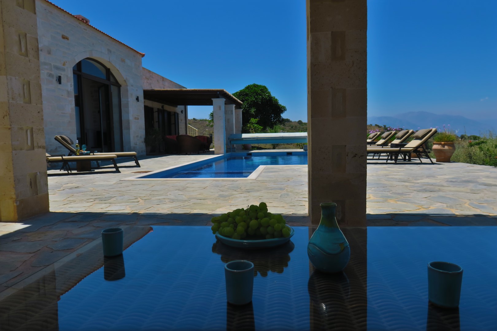 Familien oder Freunde, die eine stilvolle Natursteinvilla mit privatem Pool, Dachterrasse und Panoramablick suchen – ruhig gelegen, aber dennoch nah zu Rethymno und den Stränden im Norden und Süden Kretas.