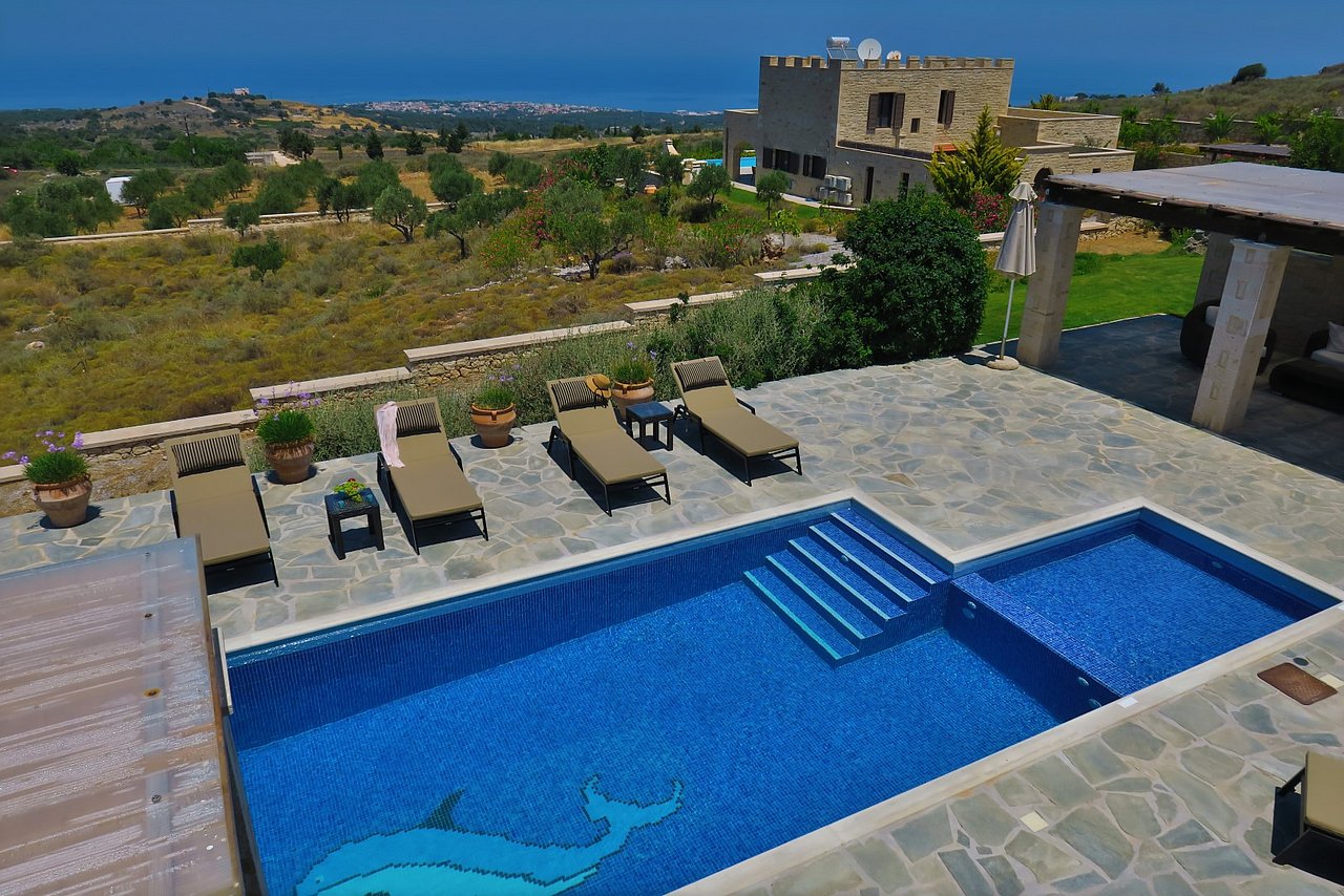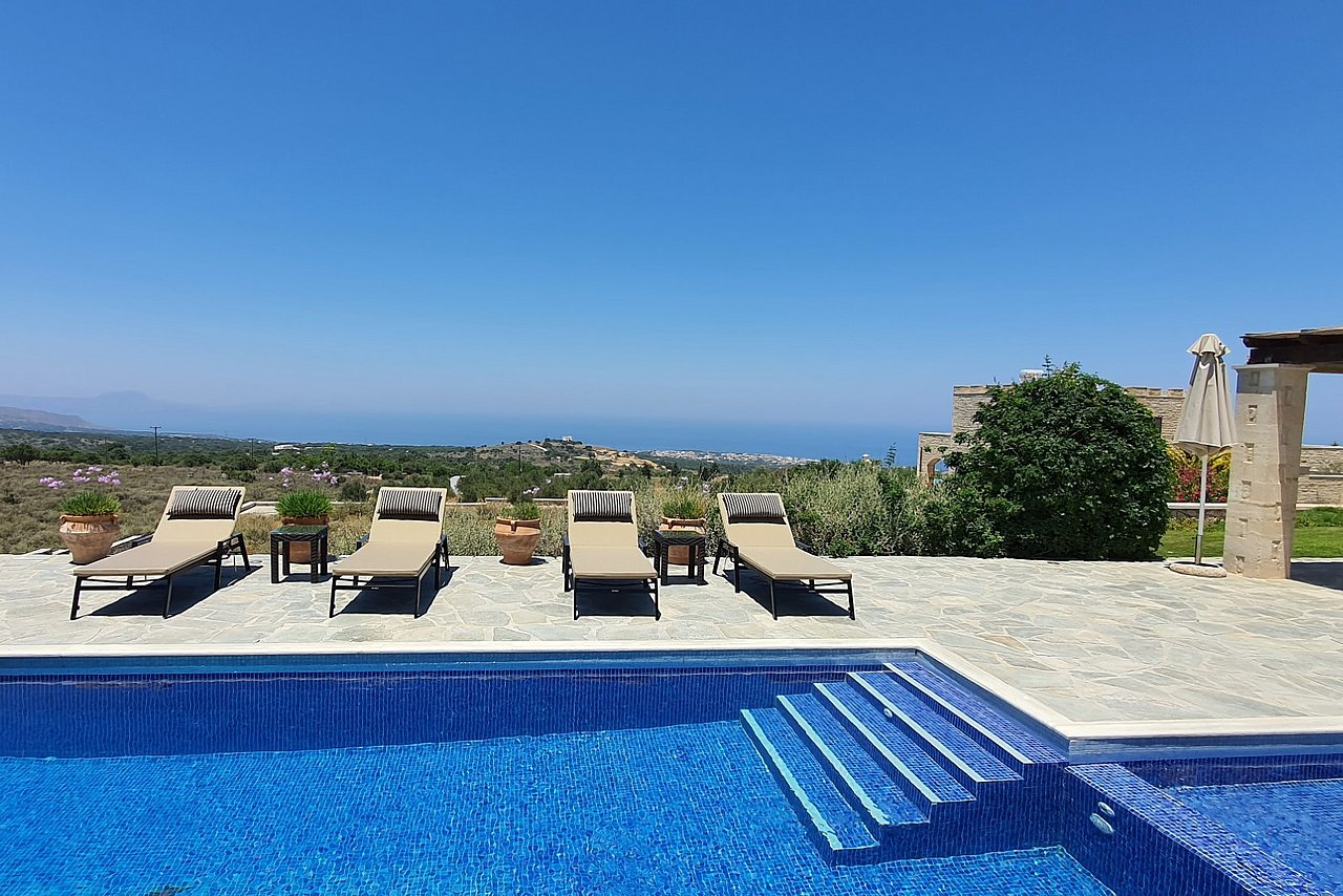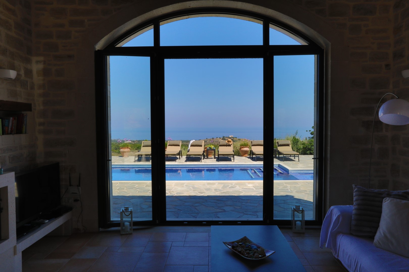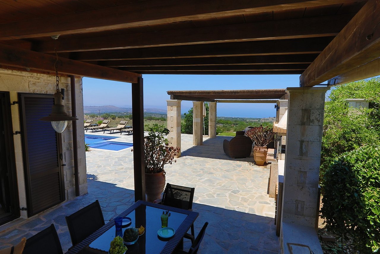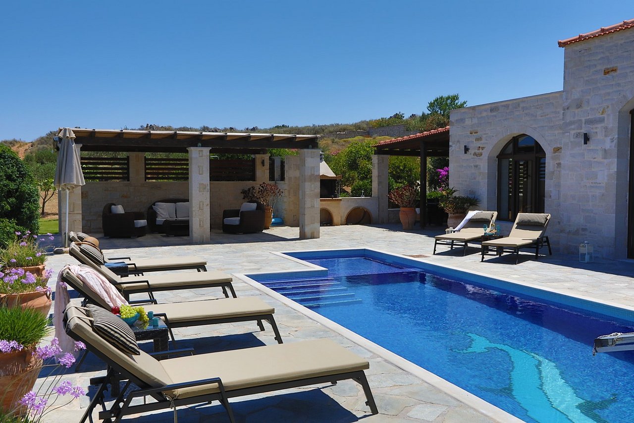 Familien oder Freunde, die eine stilvolle Natursteinvilla mit privatem Pool, Dachterrasse und Panoramablick suchen – ruhig gelegen, aber dennoch nah zu Rethymno und den Stränden im Norden und Süden Kretas.