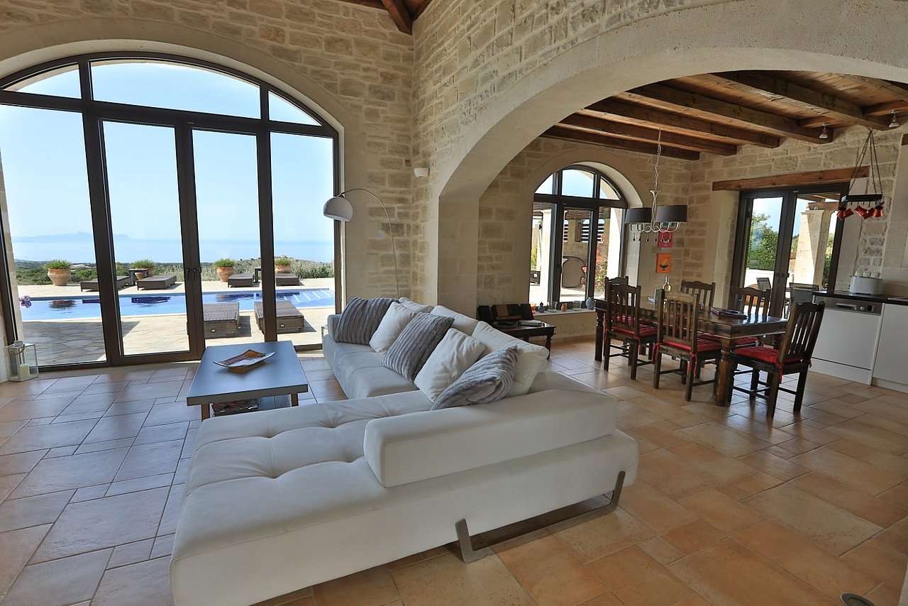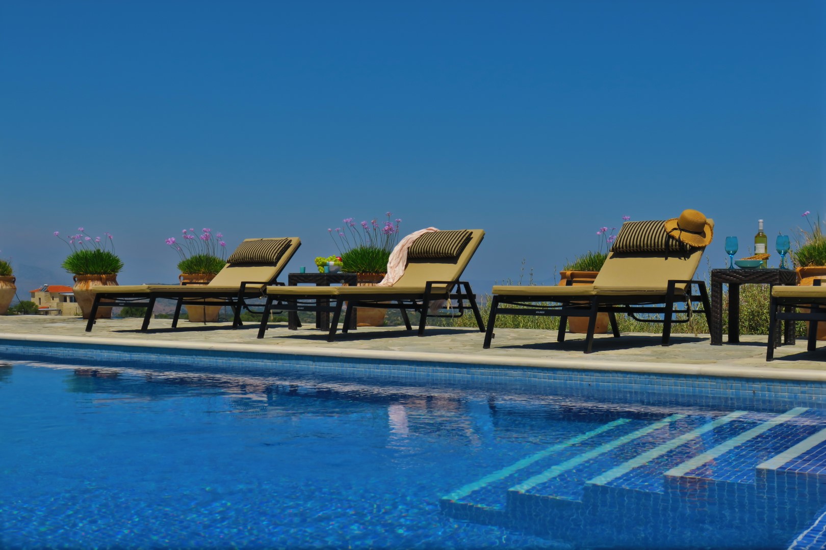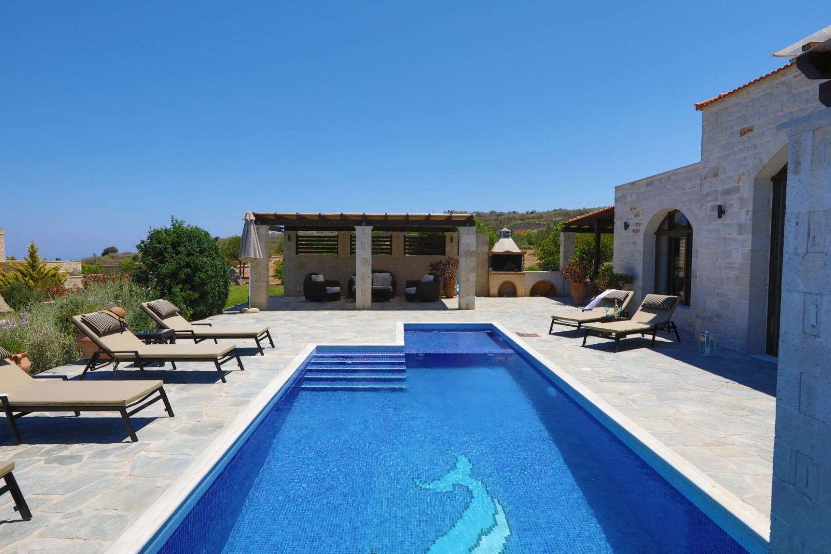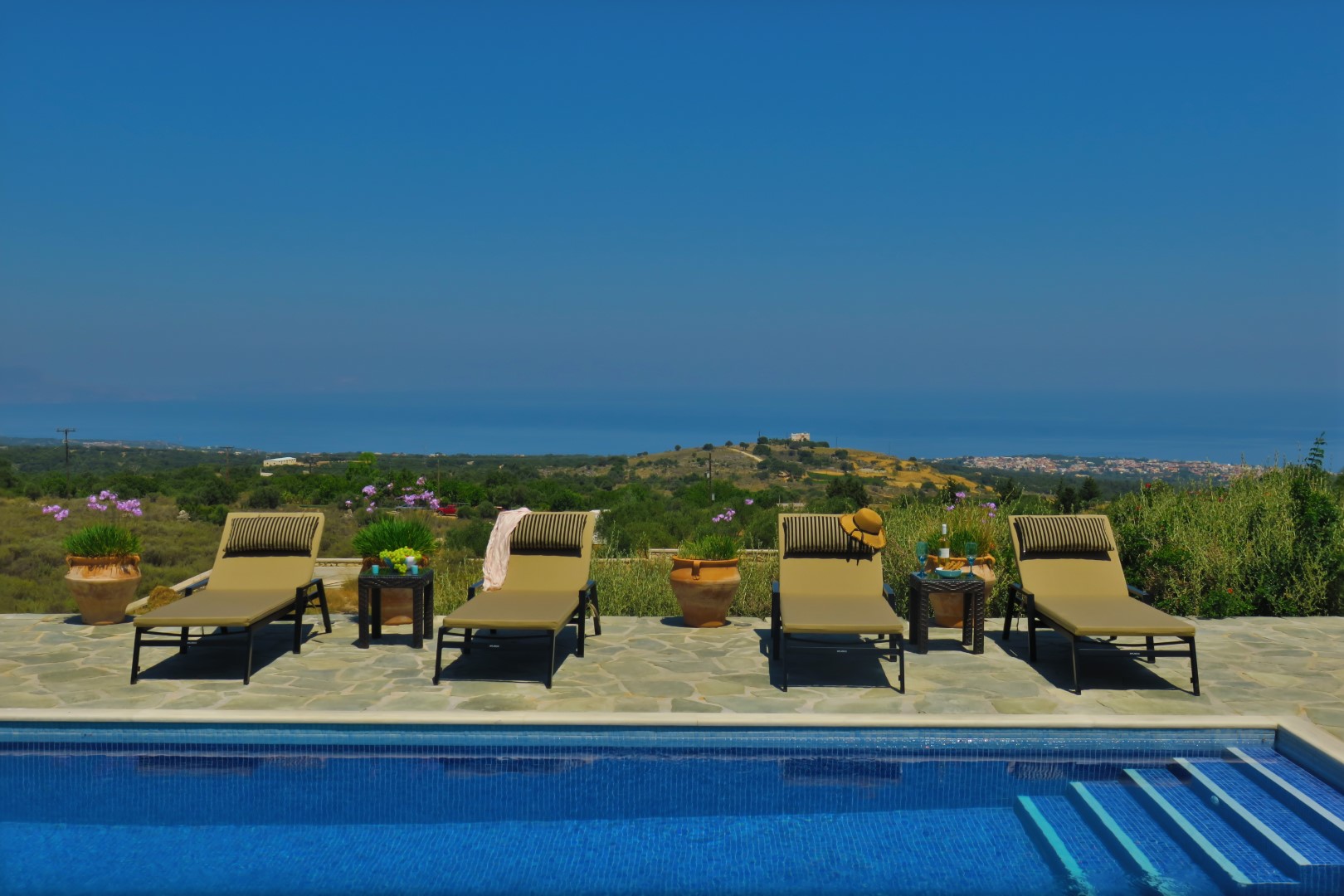 Familien oder Freunde, die eine stilvolle Natursteinvilla mit privatem Pool, Dachterrasse und Panoramablick suchen – ruhig gelegen, aber dennoch nah zu Rethymno und den Stränden im Norden und Süden Kretas.