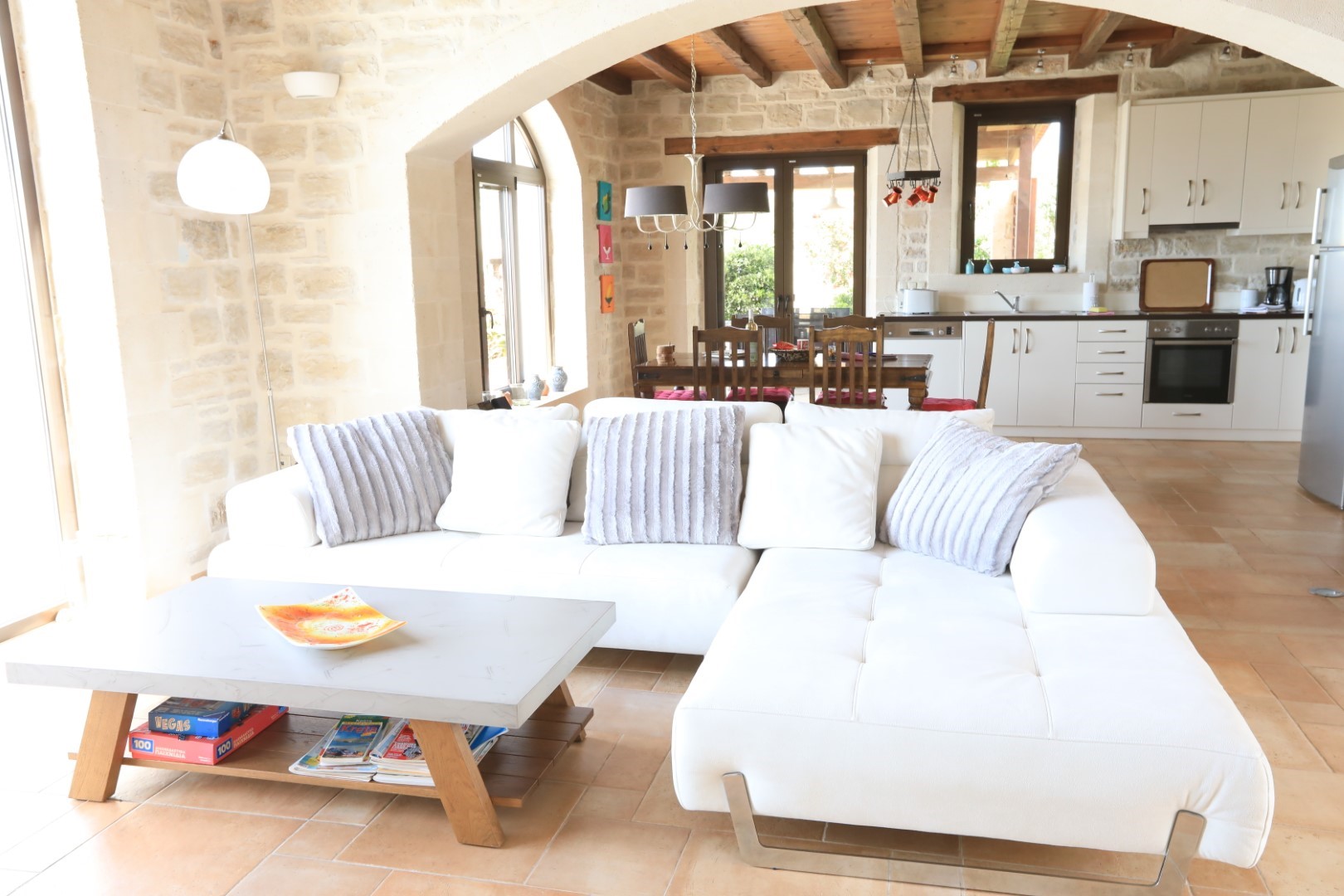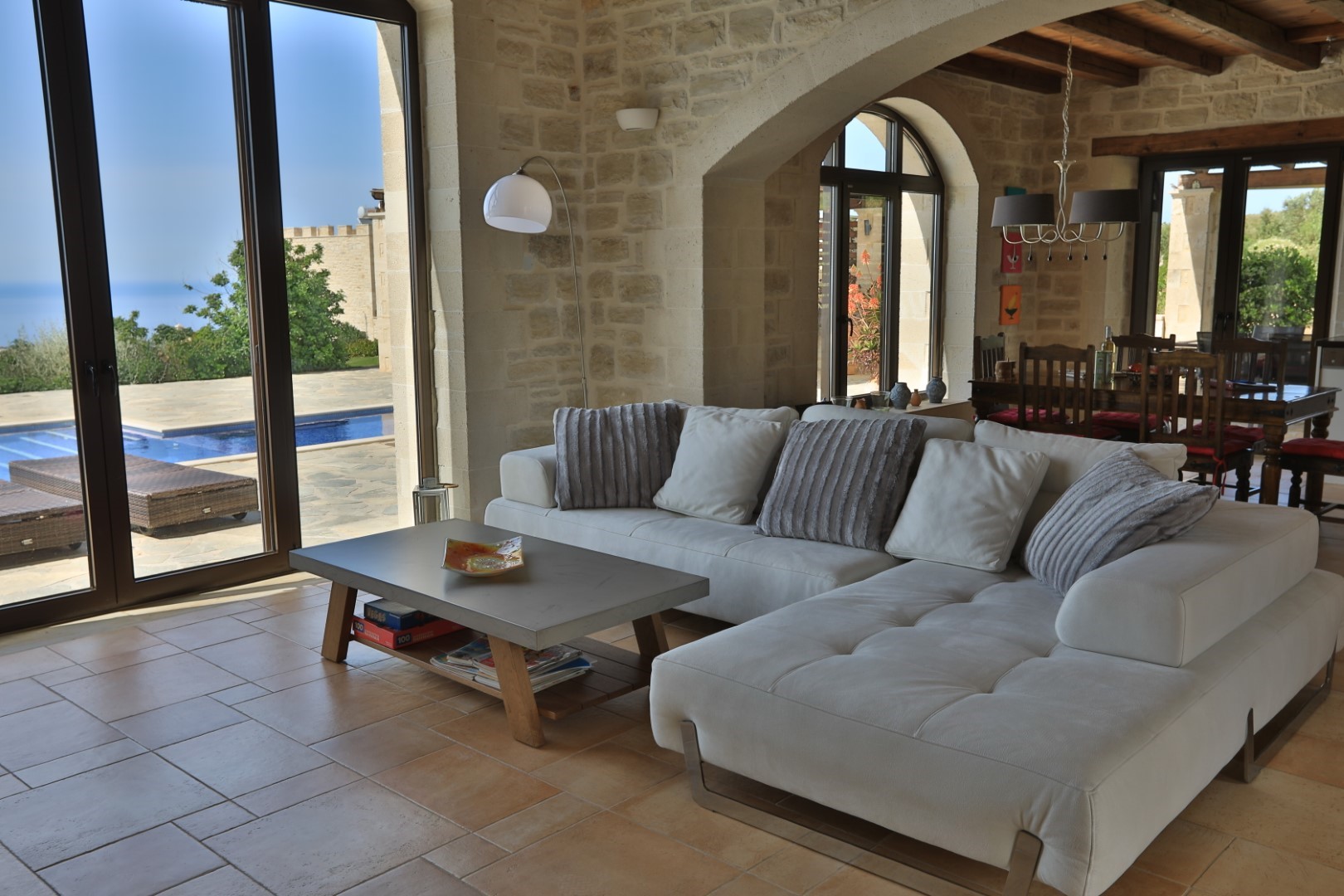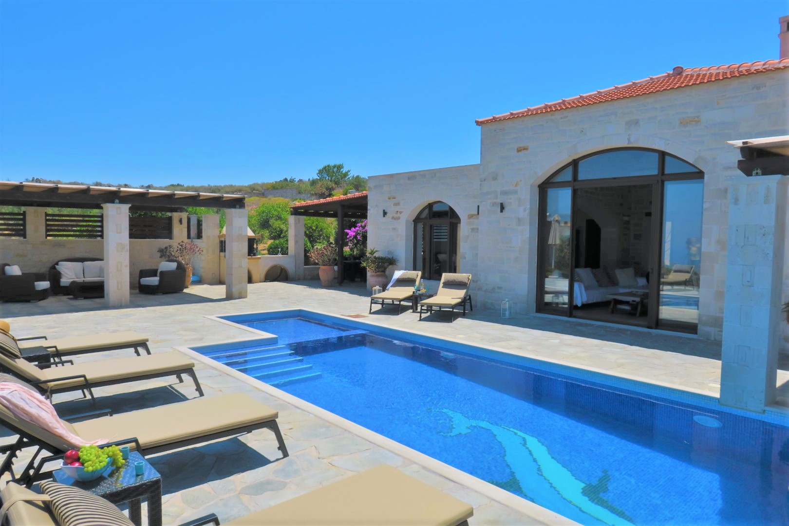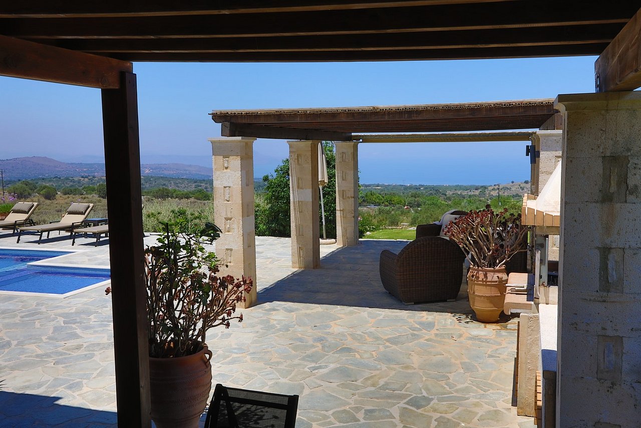Familien oder Freunde, die eine stilvolle Natursteinvilla mit privatem Pool, Dachterrasse und Panoramablick suchen – ruhig gelegen, aber dennoch nah zu Rethymno und den Stränden im Norden und Süden Kretas.