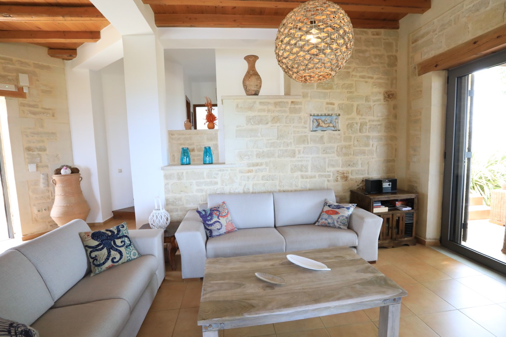 Die Villa ist auf drei Ebenen aufgeteilt und vereint traditionelle Steinbauweise mit modernem Komfort.