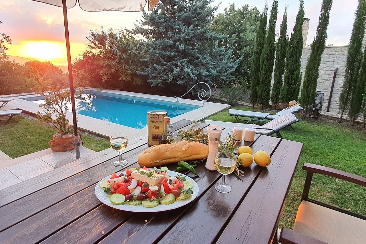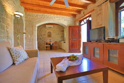 Die Villa ist mit viel Liebe zum Detail eingerichtet und verbindet traditionelle Stein- und Holzelemente mit modernem Komfort.