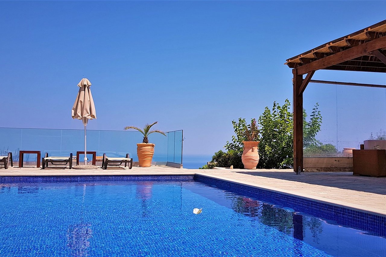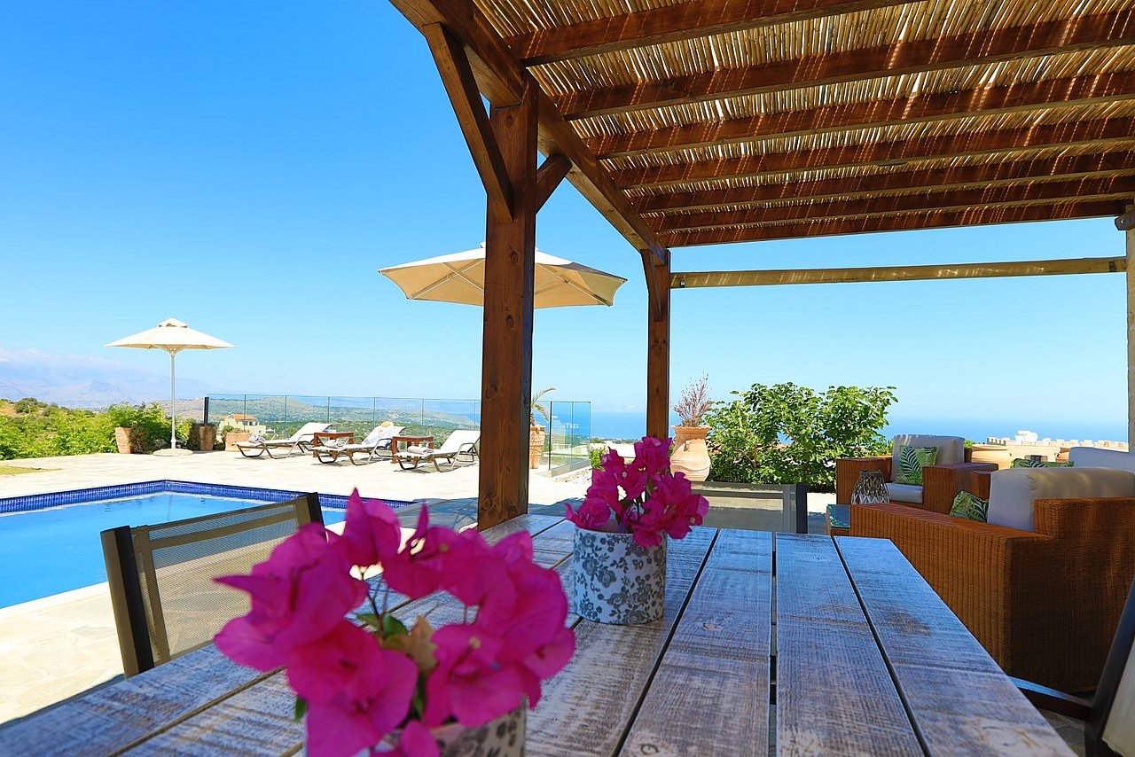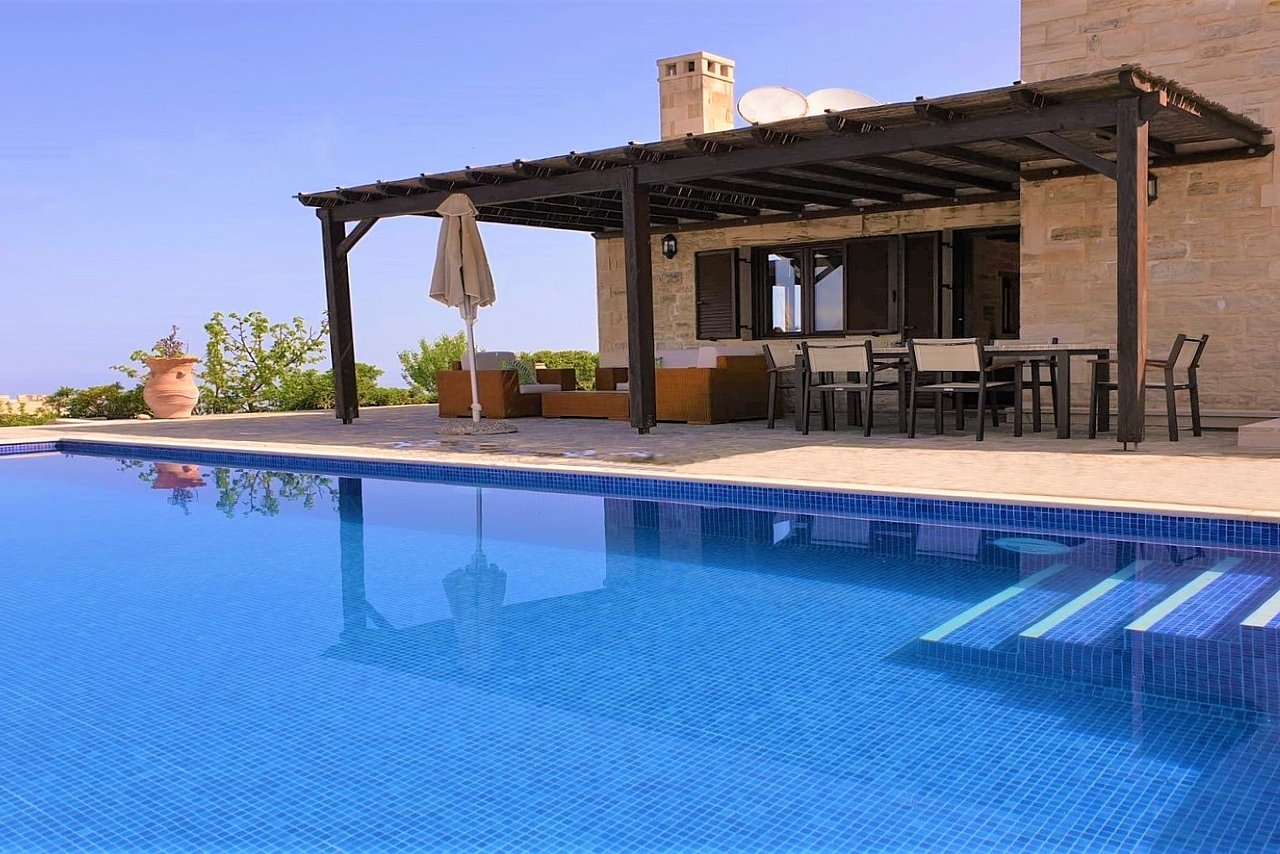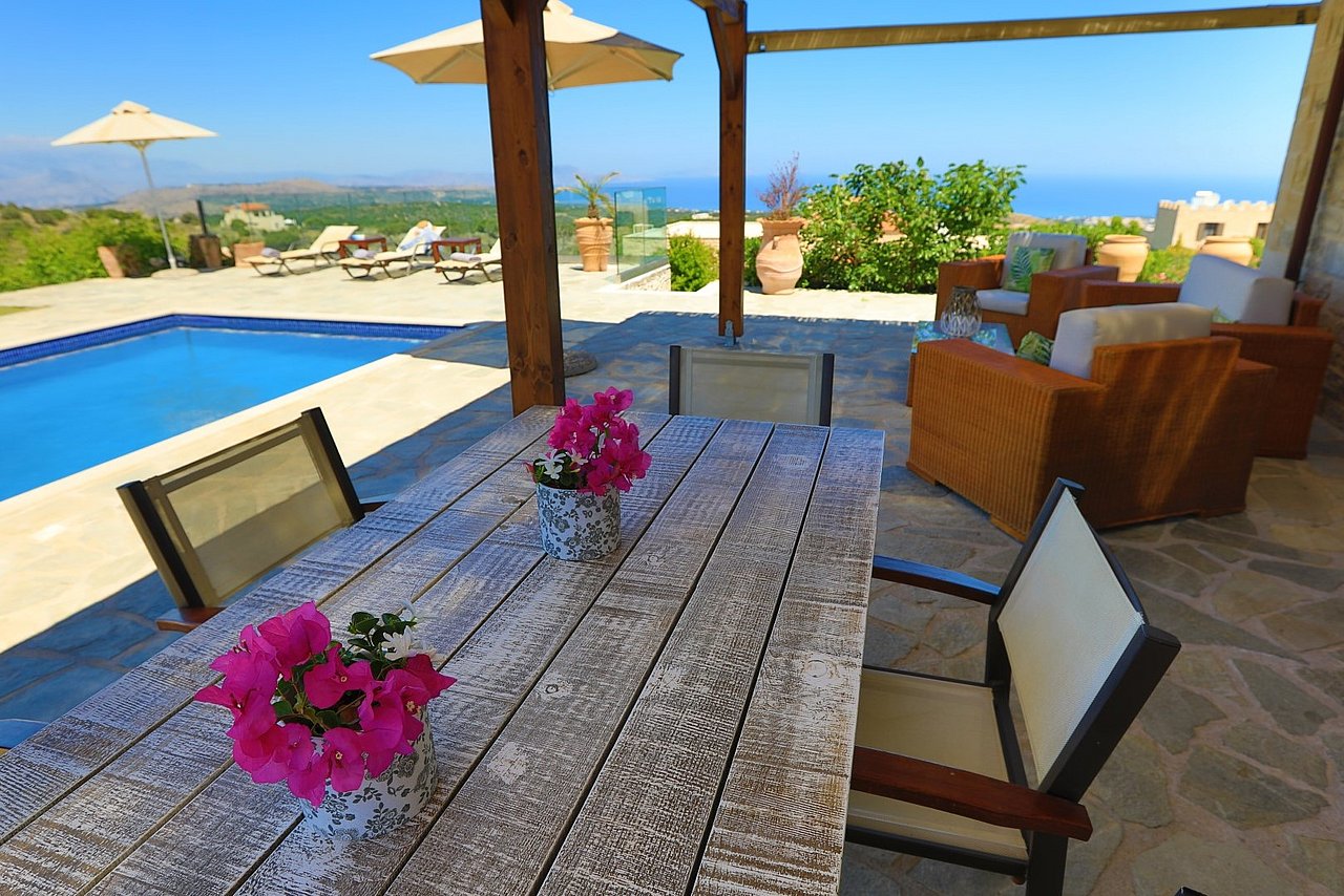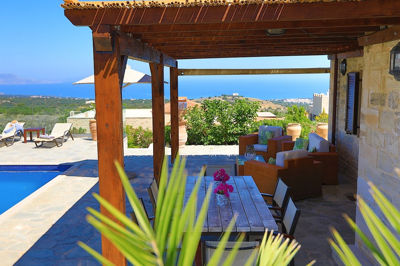 Paare oder kleine Familien, die eine elegante Villa mit privatem Pool, viel Ruhe, mediterranem Flair und grandiosem Panoramablick suchen – in bester Lage nahe Rethymno.