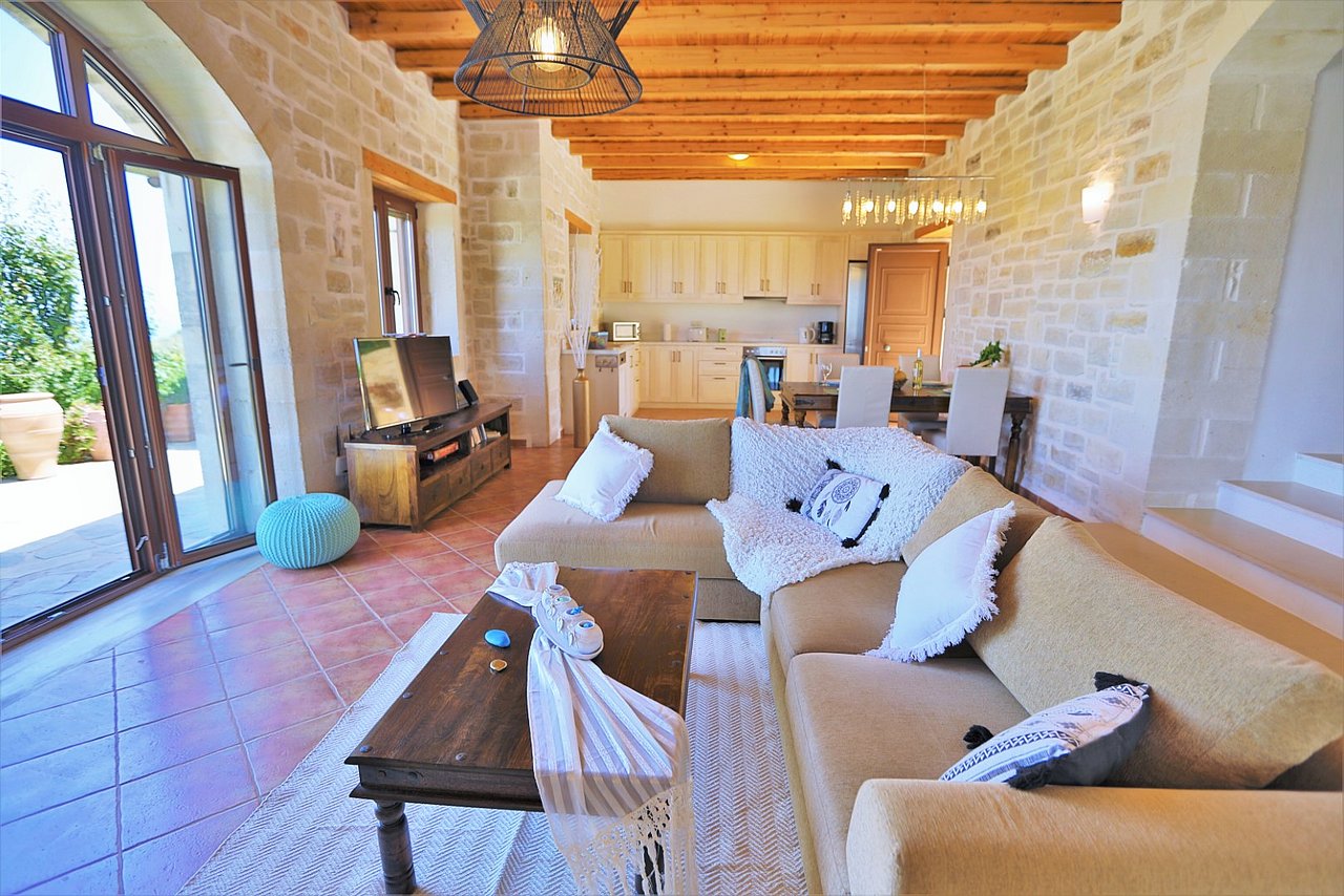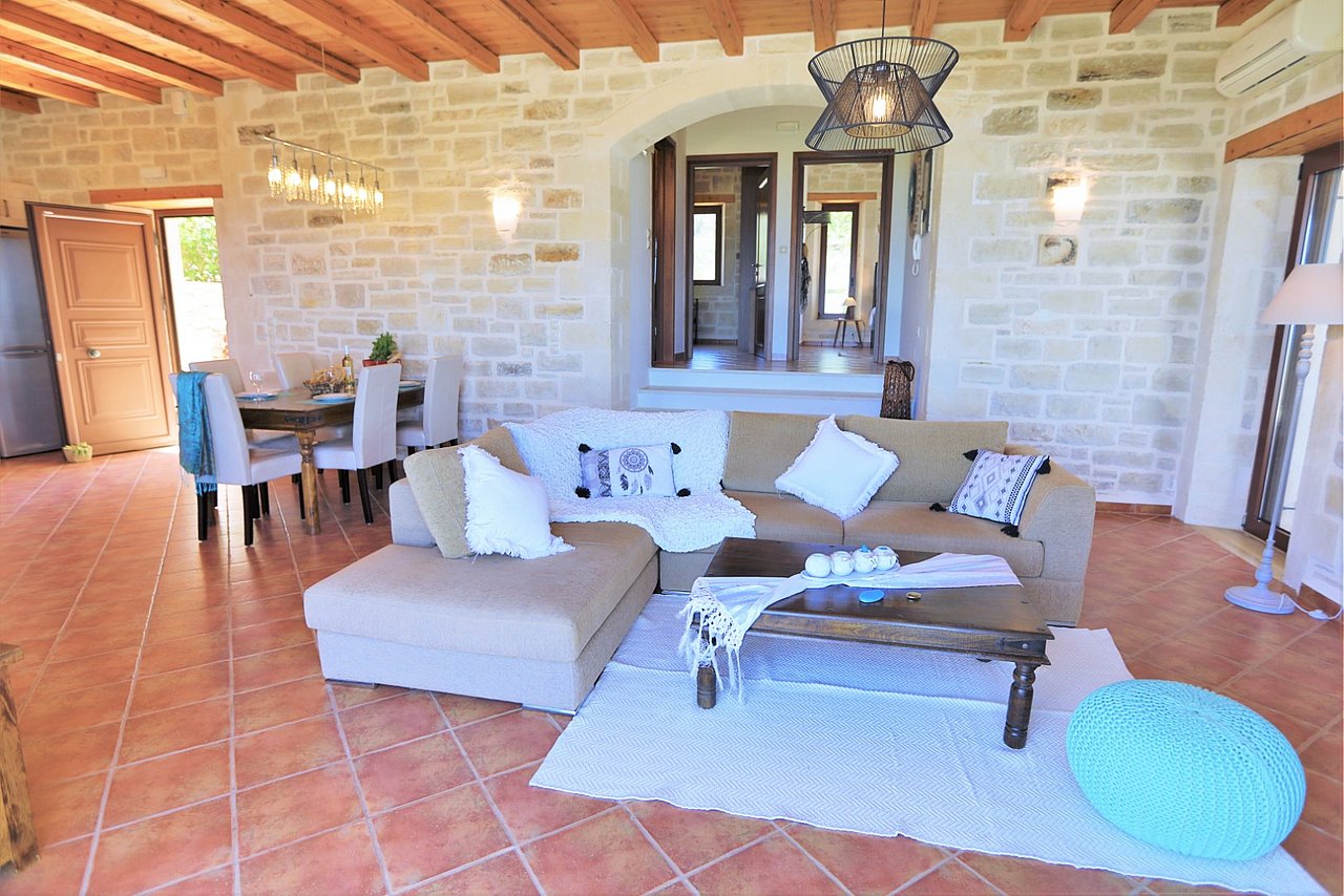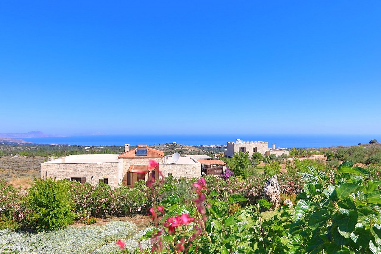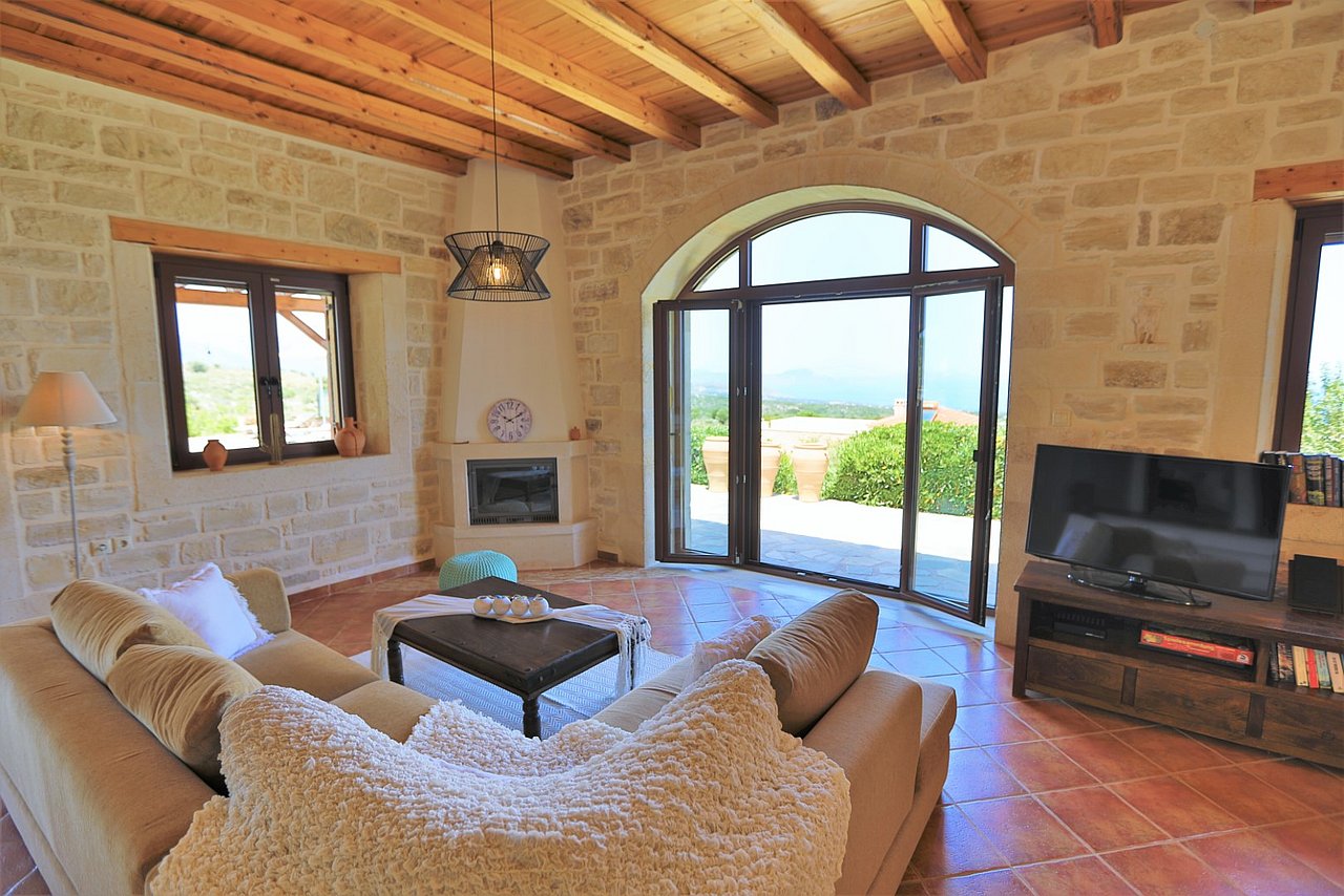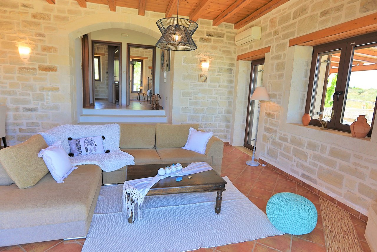 Die exklusive Villa Tara liegt auf einem Hügel oberhalb von Rethymno und bietet auf 125 m2 Wohnfläche eine gelungene Kombination aus traditioneller Natursteinarchitektur und modernem Komfort. Mit 70 cm dicken Außenmauern sorgt sie im Sommer für angenehme Kühle und in den kühleren Monaten für wohlige Wärme. Umgeben von einem mediterranen Garten und mit traumhaftem Blick auf die Ägäis, die Weißen Berge, die Halbinsel Akrotiri und die Küste ist sie der ideale Rückzugsort für Ruhe und Erholung.