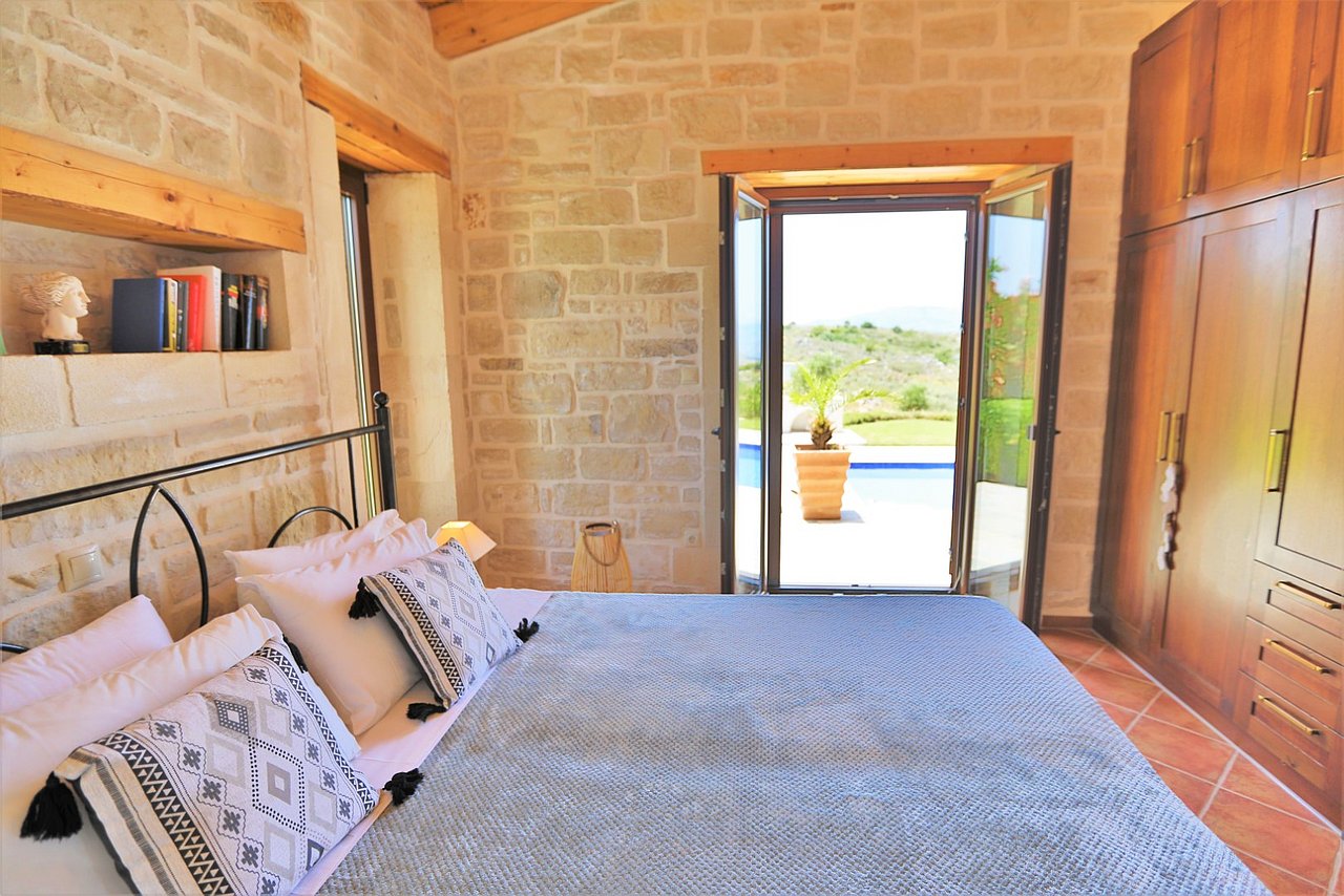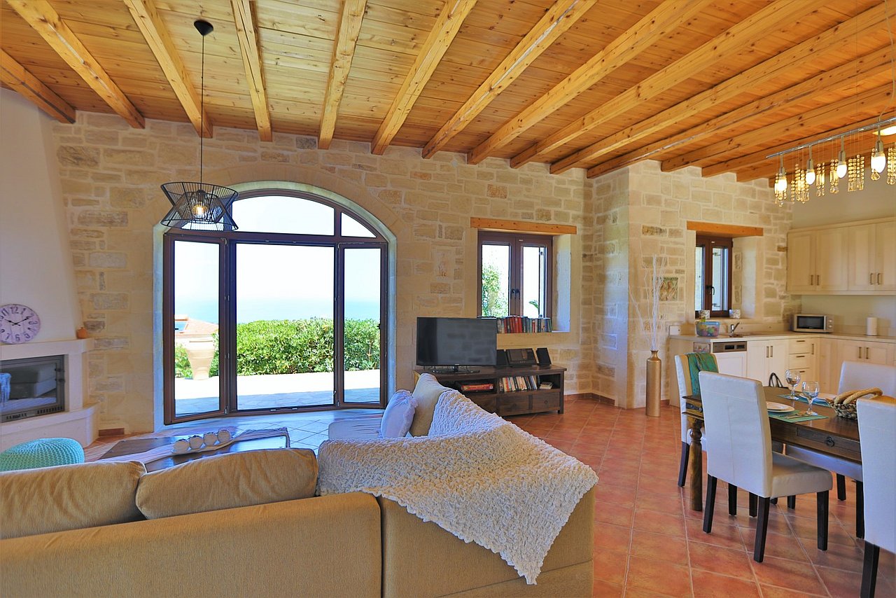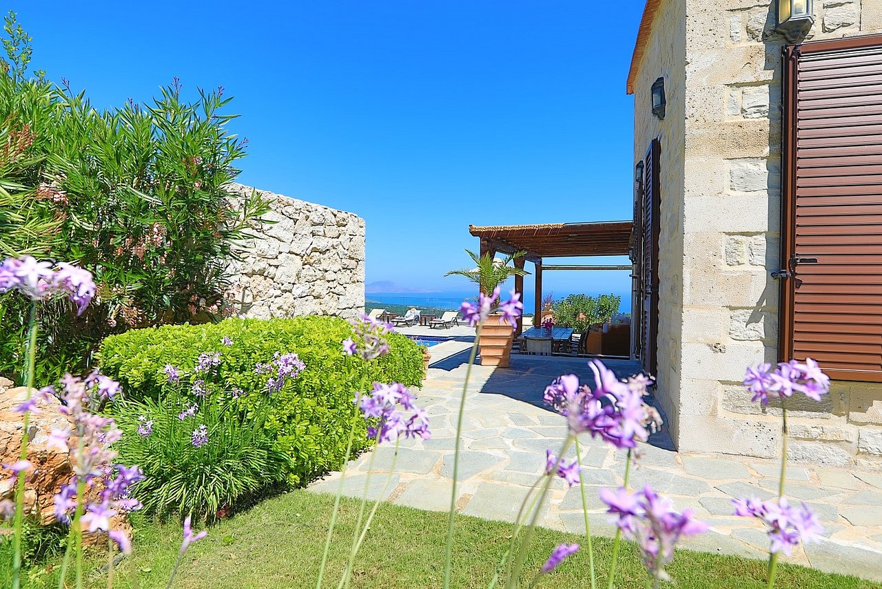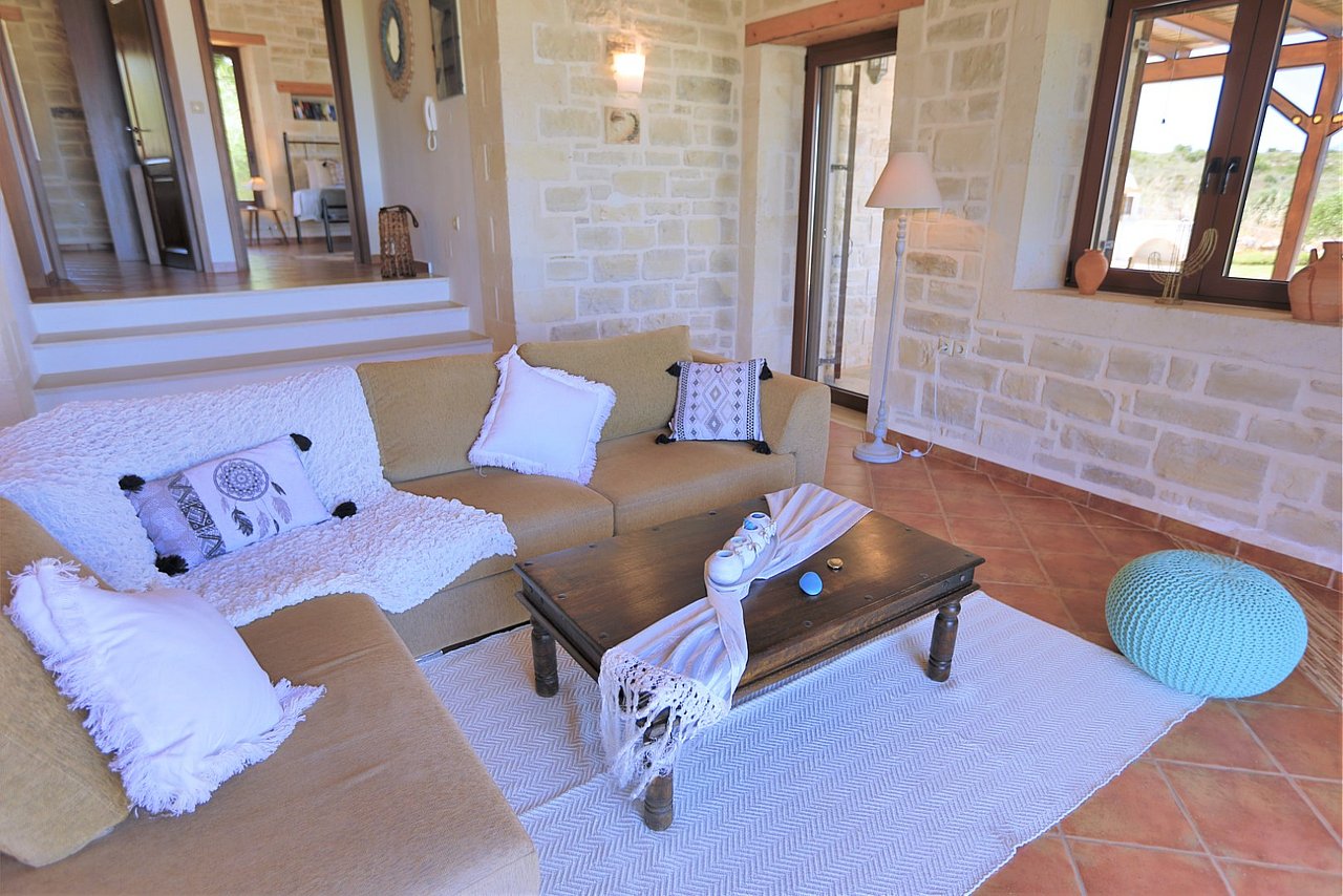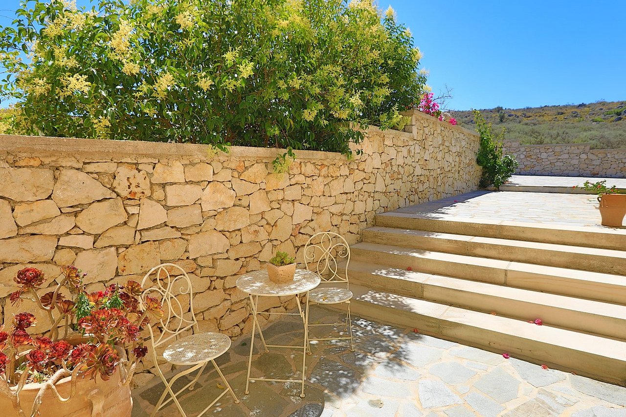 Die exklusive Villa Tara liegt auf einem Hügel oberhalb von Rethymno und bietet auf 125 m2 Wohnfläche eine gelungene Kombination aus traditioneller Natursteinarchitektur und modernem Komfort. Mit 70 cm dicken Außenmauern sorgt sie im Sommer für angenehme Kühle und in den kühleren Monaten für wohlige Wärme. Umgeben von einem mediterranen Garten und mit traumhaftem Blick auf die Ägäis, die Weißen Berge, die Halbinsel Akrotiri und die Küste ist sie der ideale Rückzugsort für Ruhe und Erholung.