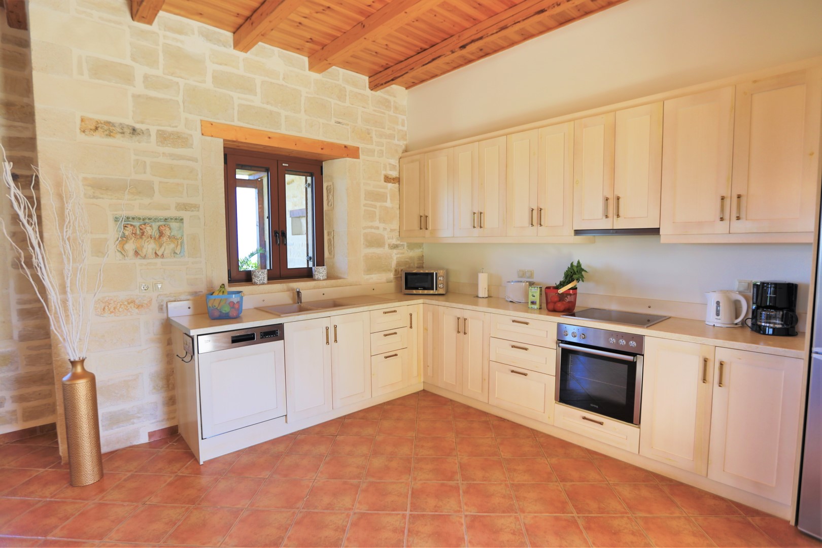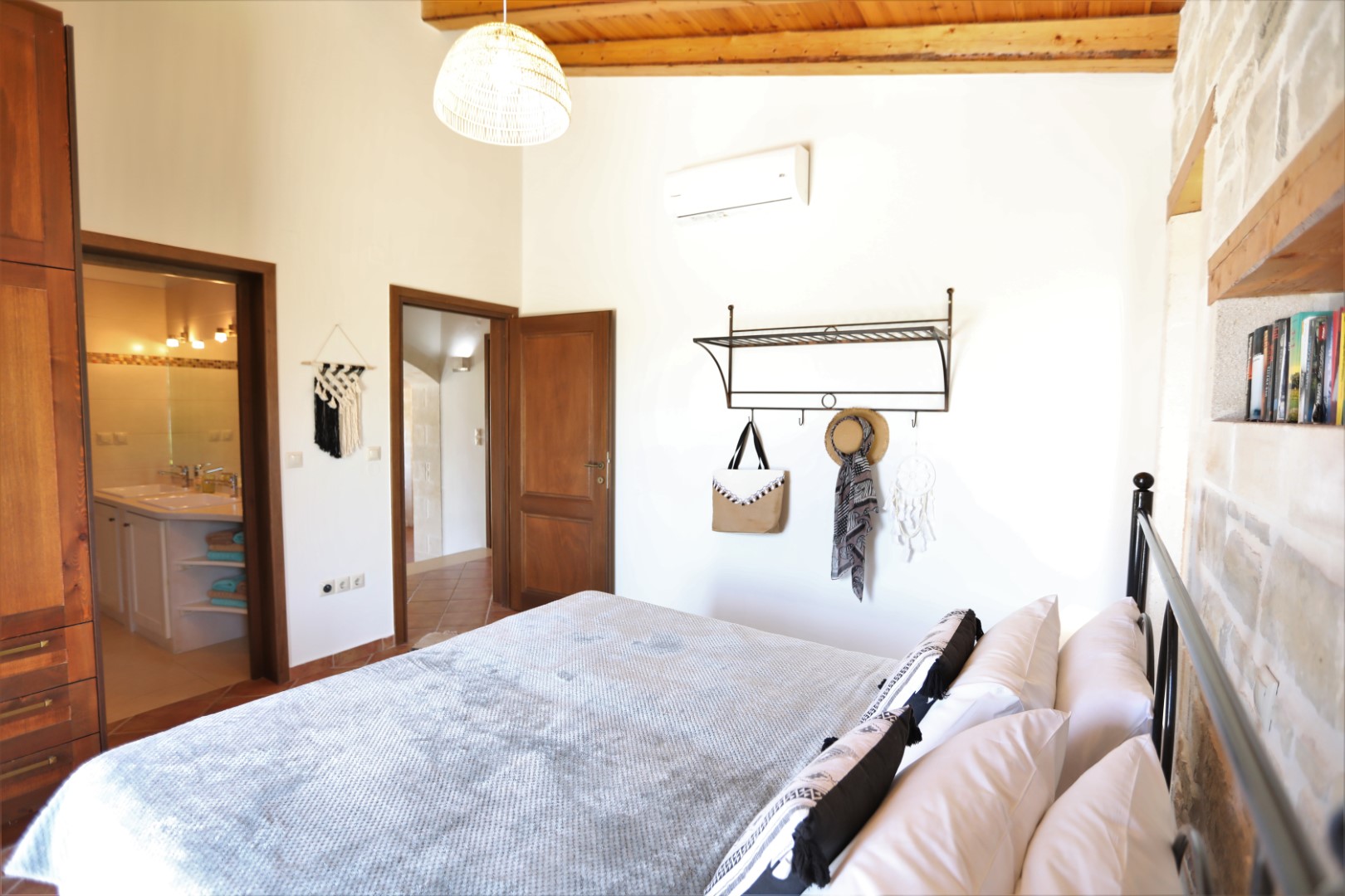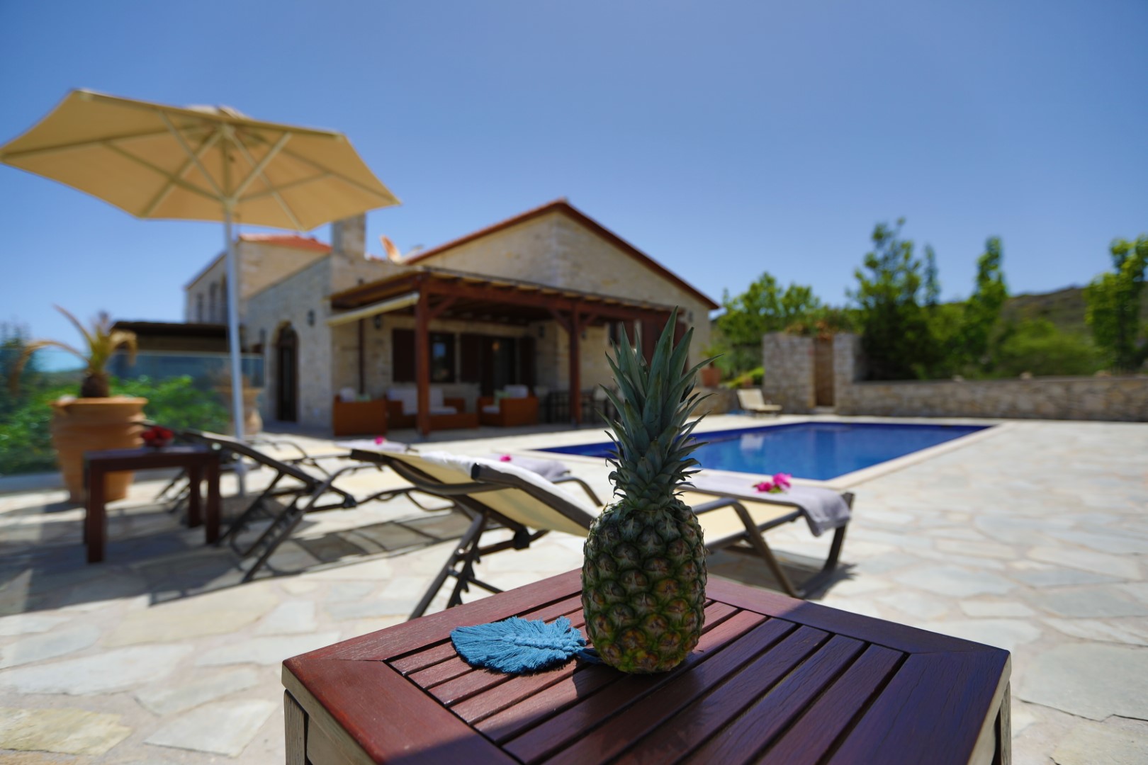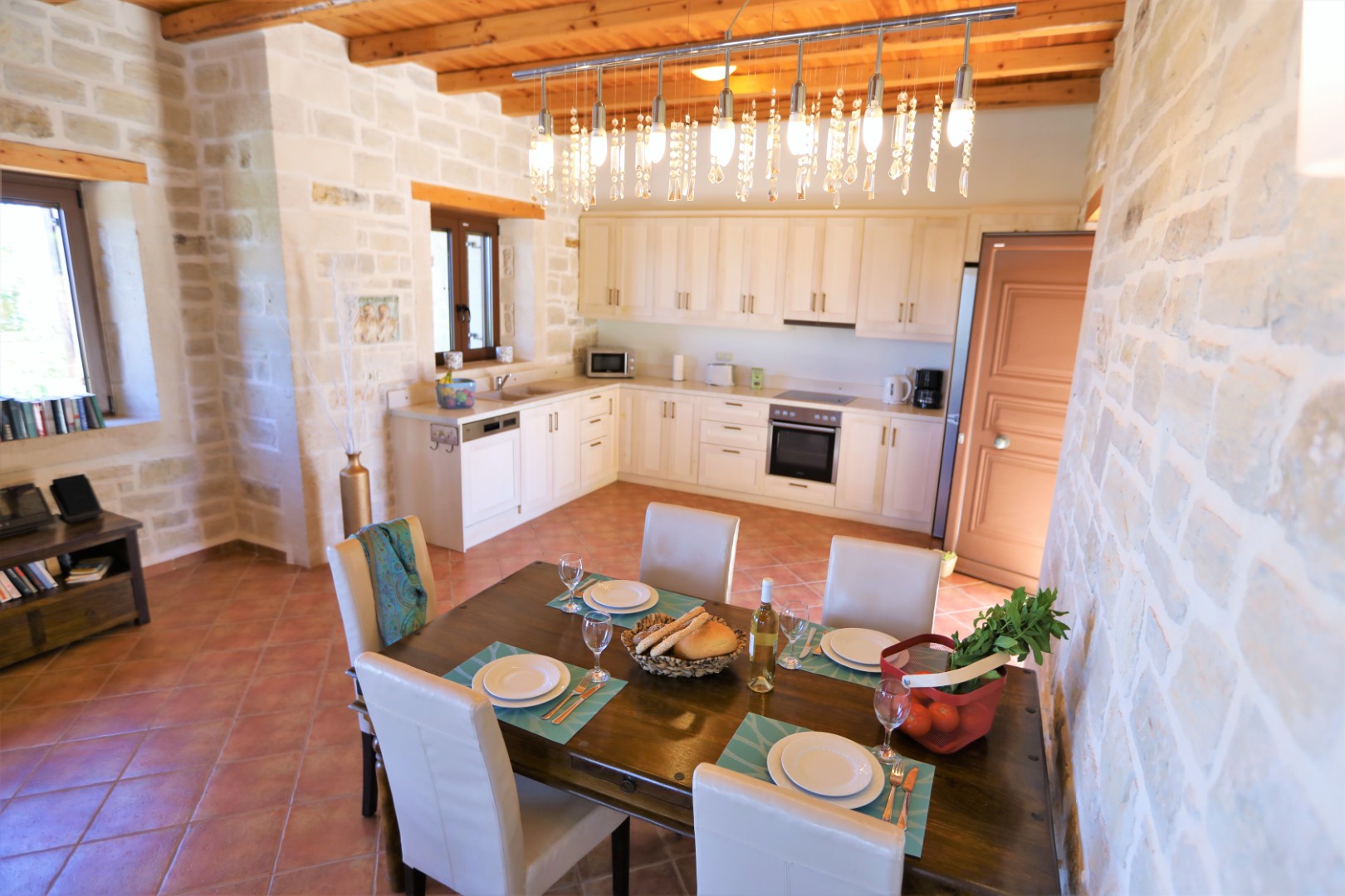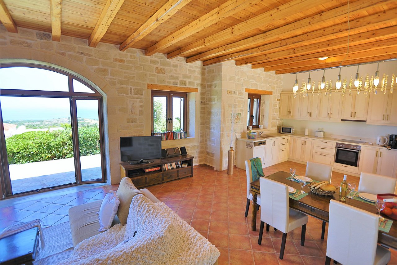 Die exklusive Villa Tara liegt auf einem Hügel oberhalb von Rethymno und bietet auf 125 m2 Wohnfläche eine gelungene Kombination aus traditioneller Natursteinarchitektur und modernem Komfort. Mit 70 cm dicken Außenmauern sorgt sie im Sommer für angenehme Kühle und in den kühleren Monaten für wohlige Wärme. Umgeben von einem mediterranen Garten und mit traumhaftem Blick auf die Ägäis, die Weißen Berge, die Halbinsel Akrotiri und die Küste ist sie der ideale Rückzugsort für Ruhe und Erholung.