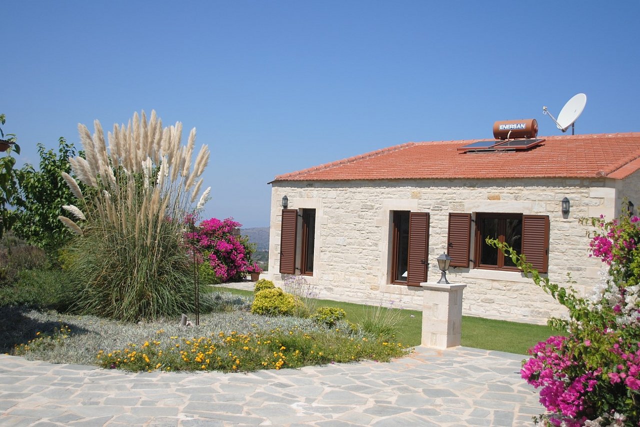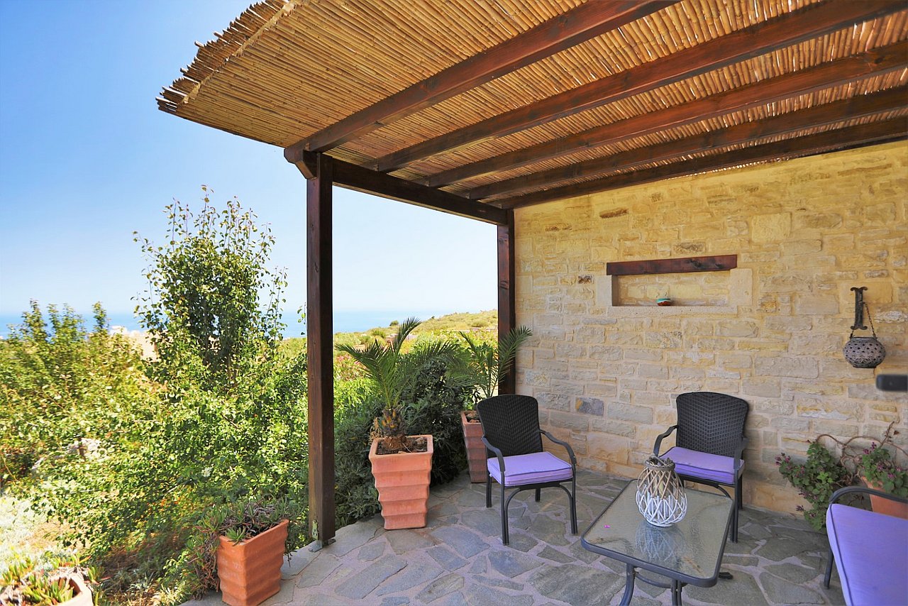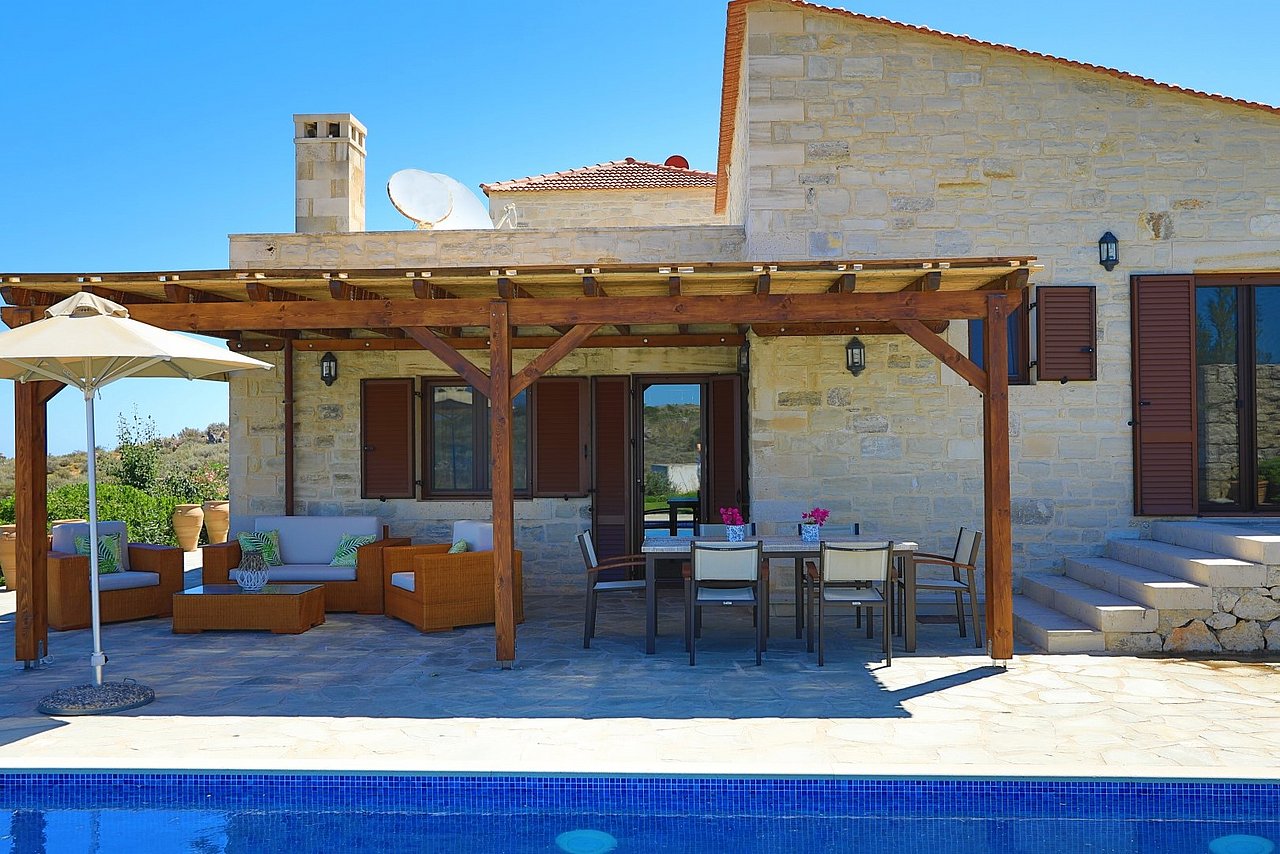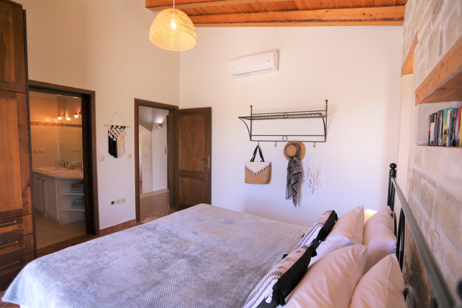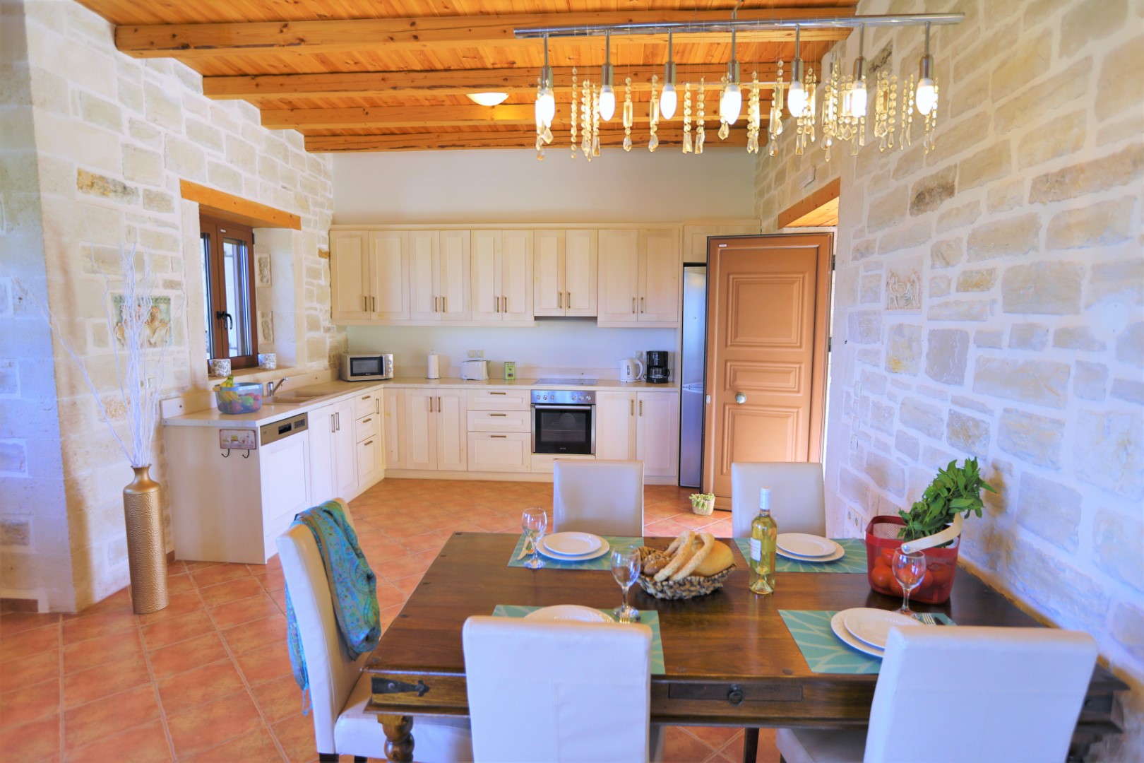 Die exklusive Villa Tara liegt auf einem Hügel oberhalb von Rethymno und bietet auf 125 m2 Wohnfläche eine gelungene Kombination aus traditioneller Natursteinarchitektur und modernem Komfort. Mit 70 cm dicken Außenmauern sorgt sie im Sommer für angenehme Kühle und in den kühleren Monaten für wohlige Wärme. Umgeben von einem mediterranen Garten und mit traumhaftem Blick auf die Ägäis, die Weißen Berge, die Halbinsel Akrotiri und die Küste ist sie der ideale Rückzugsort für Ruhe und Erholung.