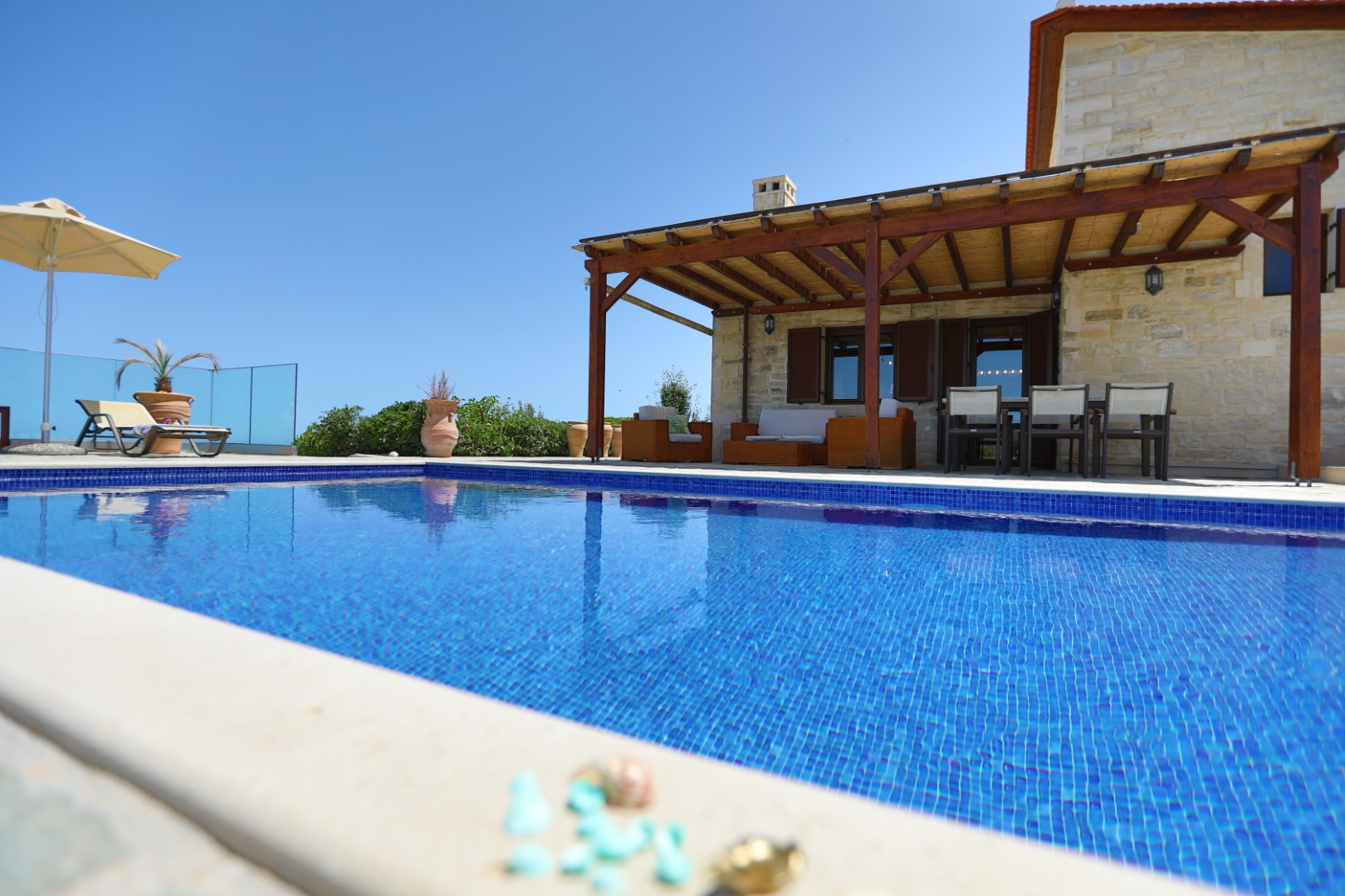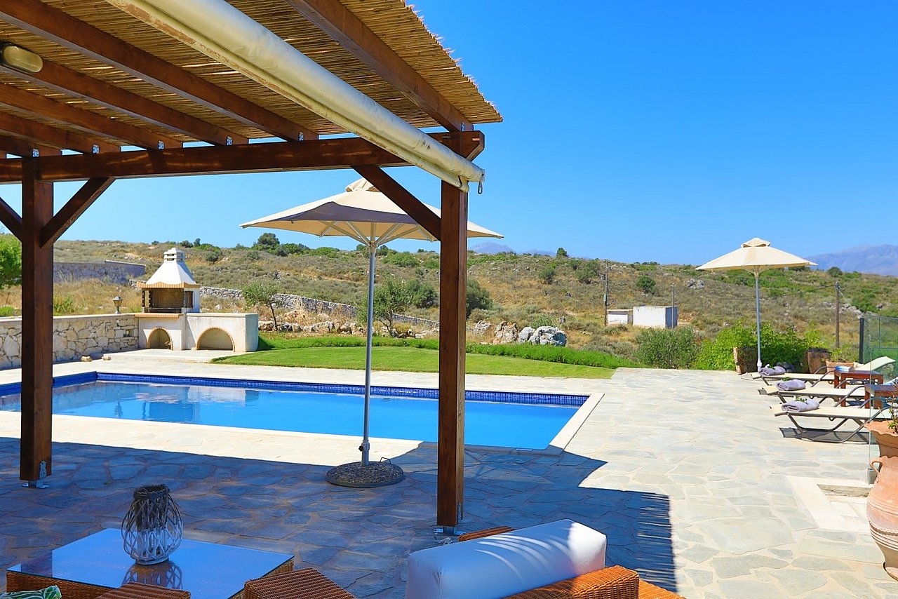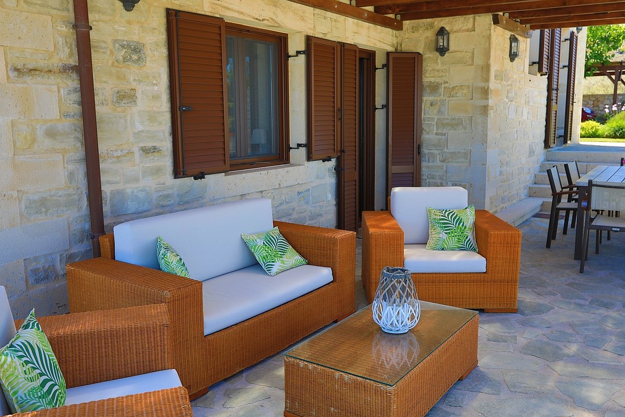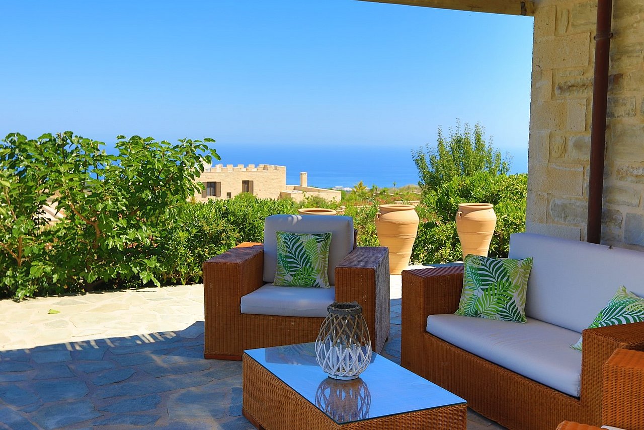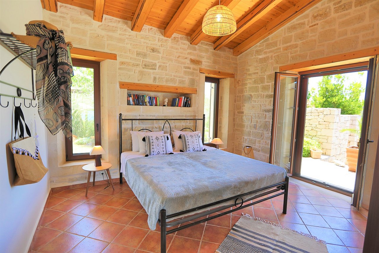 Die exklusive Villa Tara liegt auf einem Hügel oberhalb von Rethymno und bietet auf 125 m2 Wohnfläche eine gelungene Kombination aus traditioneller Natursteinarchitektur und modernem Komfort. Mit 70 cm dicken Außenmauern sorgt sie im Sommer für angenehme Kühle und in den kühleren Monaten für wohlige Wärme. Umgeben von einem mediterranen Garten und mit traumhaftem Blick auf die Ägäis, die Weißen Berge, die Halbinsel Akrotiri und die Küste ist sie der ideale Rückzugsort für Ruhe und Erholung.